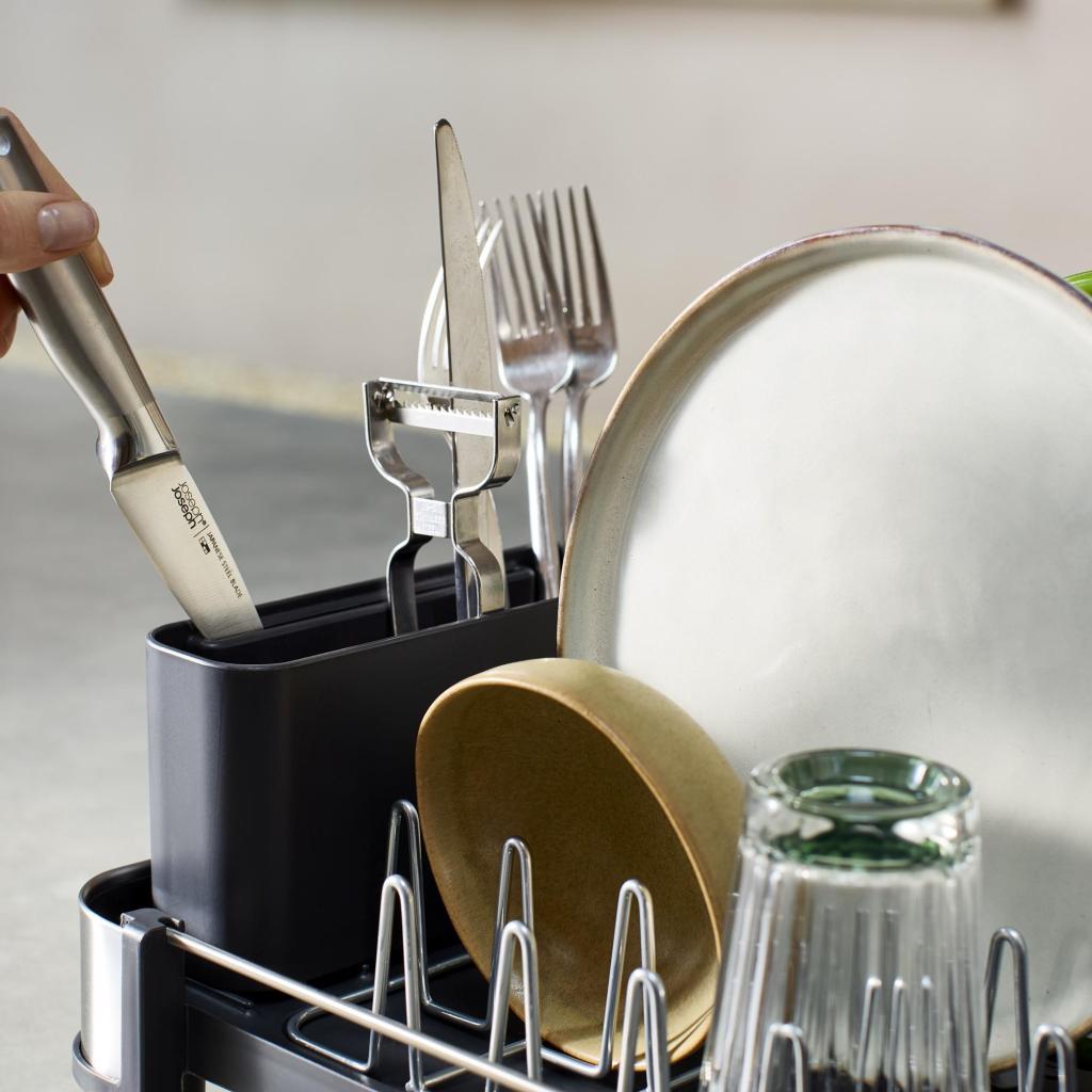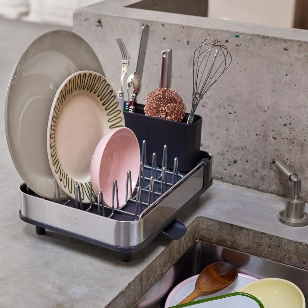 - Joseph Joseph EXTEND SLIM ofrece una solución inteligente para el secado diario de vajilla, que combina dimensiones compactas, flexibilidad y un diseño moderno.