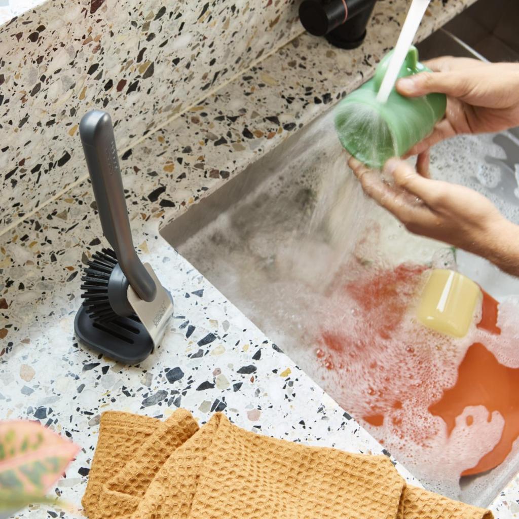 - Las cerdas duraderas están diseñadas para mantener su forma a largo plazo, incluso con el lavado regular de vajilla.