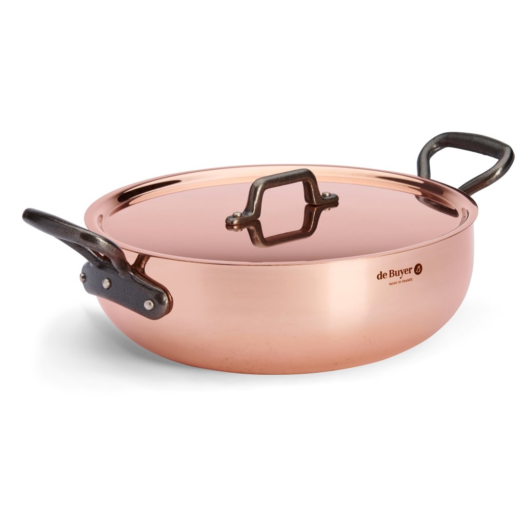 - Sartén de cobre cacerola / con tapa de Buyer PRIMA MATERA con un diámetro de 28 cm es adecuada para saltear, guisar y servir alimentos directamente en la mesa