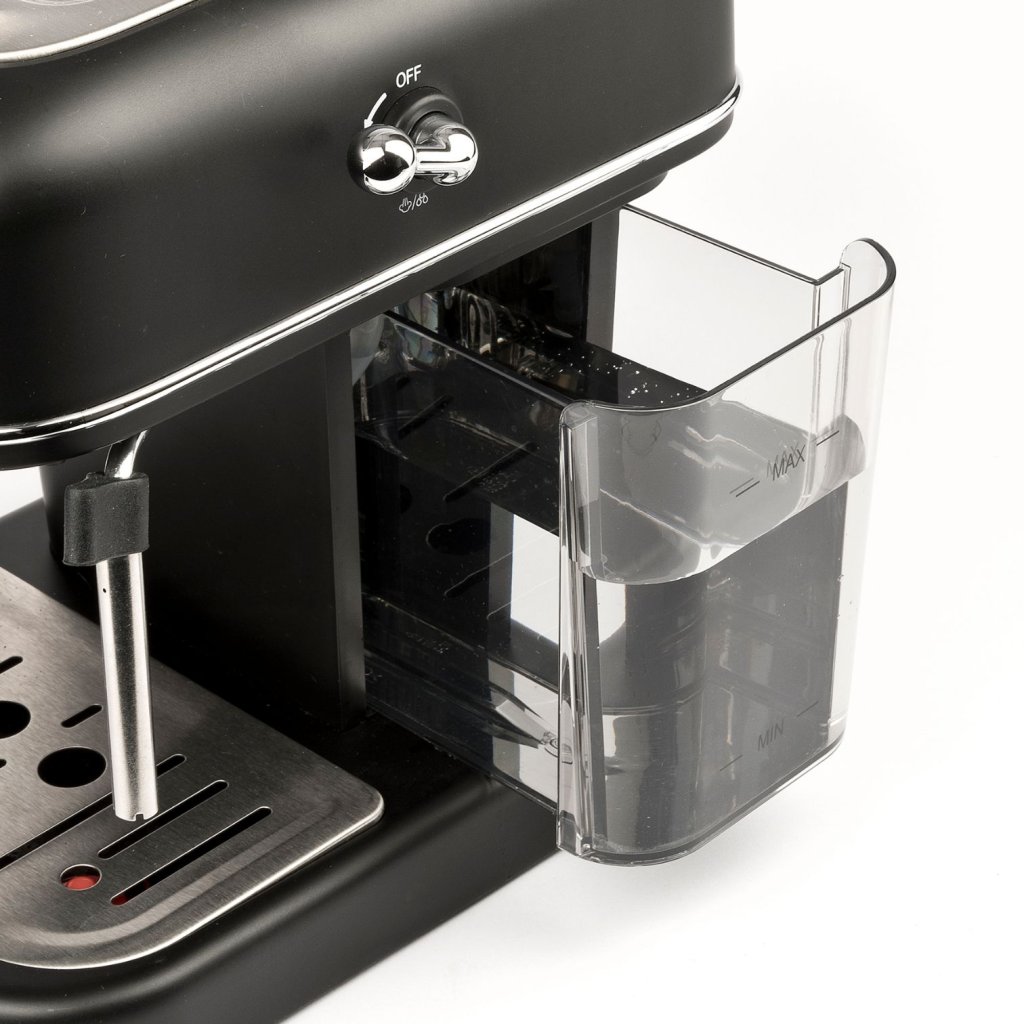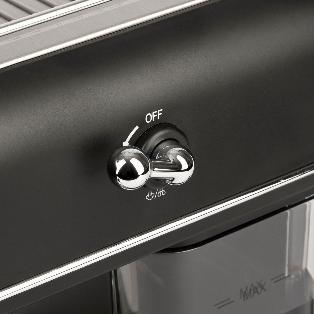 - acabado en negro mate con detalles de acero inoxidable y mandos retro de aspecto elegante y estilizado