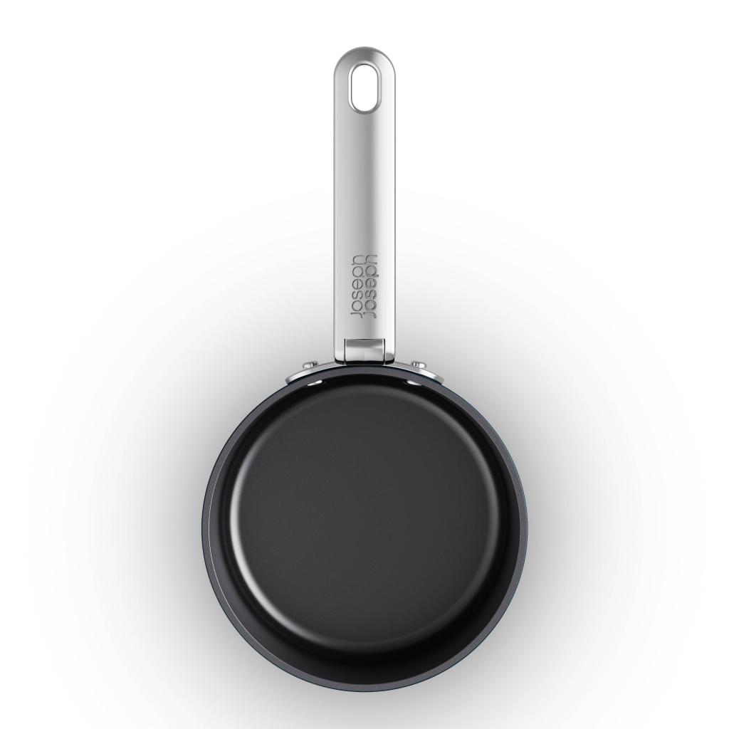 - Al plegar el asa, se puede ahorrar hasta un 50% más de espacio en comparación con las cacerolas normales, por lo que es ideal para cocinas pequeñas y espacios reducidos.