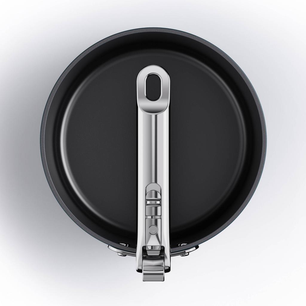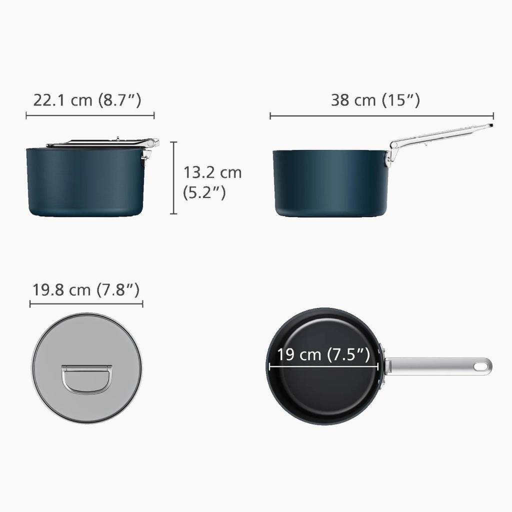 - Al plegar el asa, se puede ahorrar hasta un 50% más de espacio en comparación con las cacerolas normales, por lo que es ideal para cocinas pequeñas y espacios reducidos.