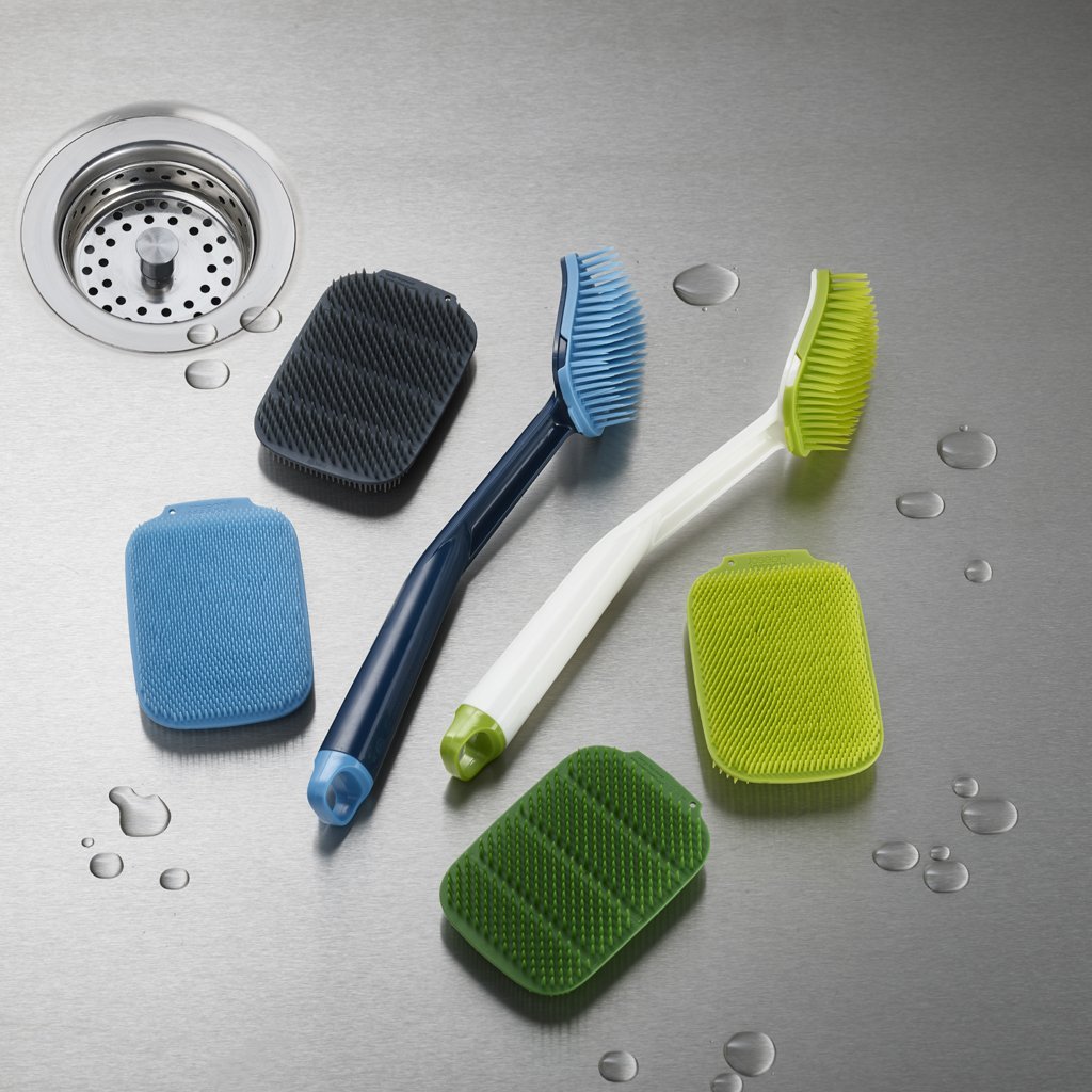 El innovador cepillo de lavado JOSEPH JOSEPH CleanTech con cerdas de plástico resistente. El agua escurre de las cerdas rápidamente y se seca. El cepillo es fácil de limpiar: a mano o en el lavavajillas. Las cerdas no rayan la superficie de la vajilla. Ideal para lavar la vajilla con revestimiento antiadherente, bandejas de horno, platos, cuencos y cubiertos. No es adecuado para lavar cuchillos afilados.