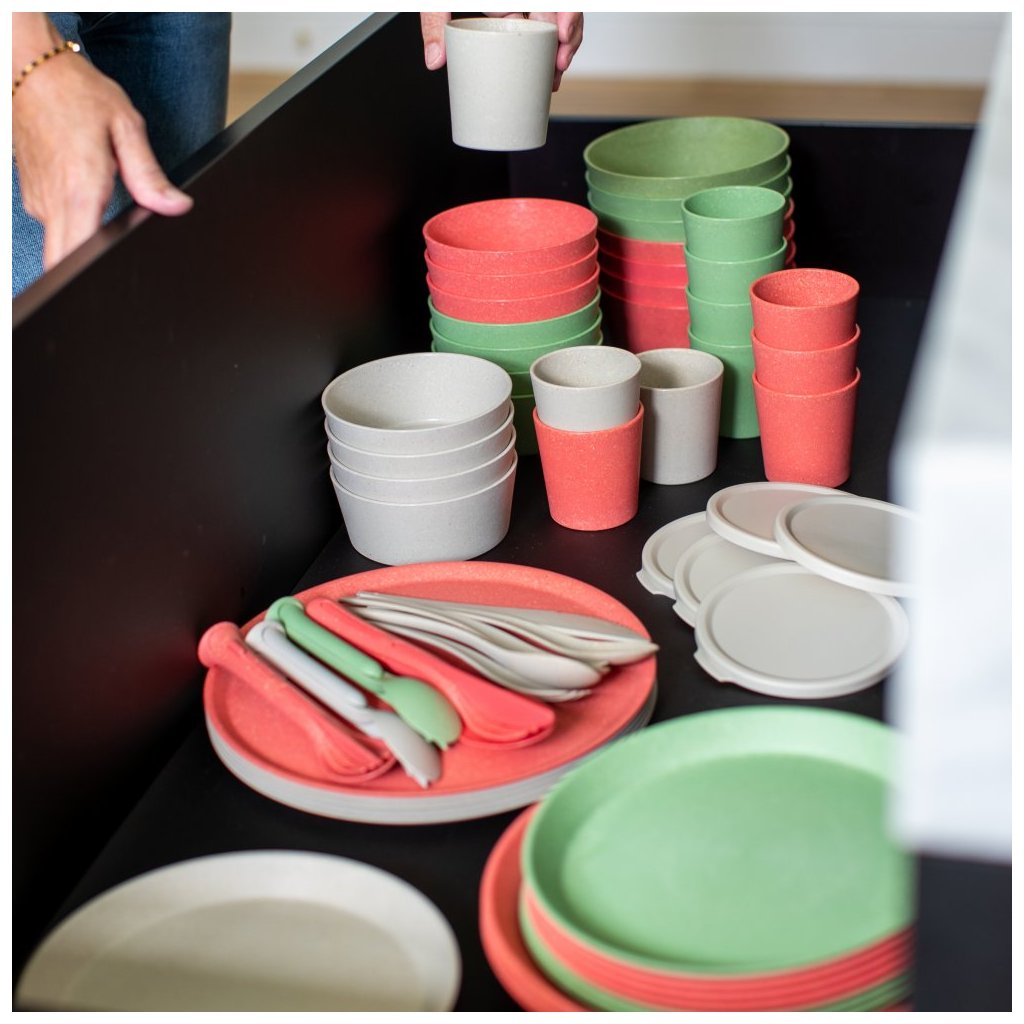 Y si te preguntas si el material es seguro para tu salud, debes saber que la colección Organic está hecha de un nuevo material compuesto por fibras de celulosa y termoplásticos que es 100% reciclable, extremadamente duradero y apto para el lavavajillas.