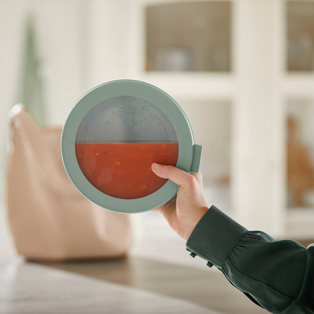 - la tapa transparente permite ver rápidamente el contenido sin abrir el recipiente