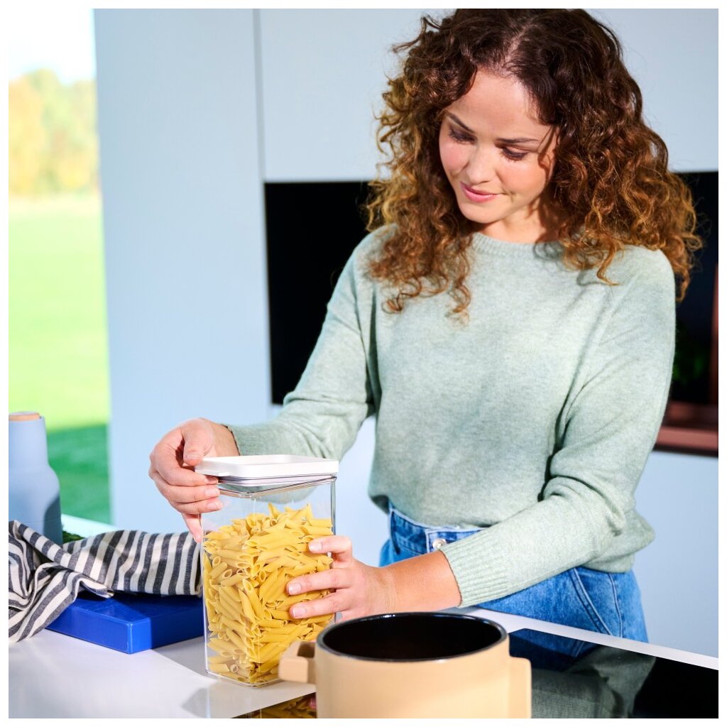 - sus dimensiones compactas y su capacidad de apilamiento ahorran espacio en el frigorífico y garantizan la claridad del compartimento frigorífico
