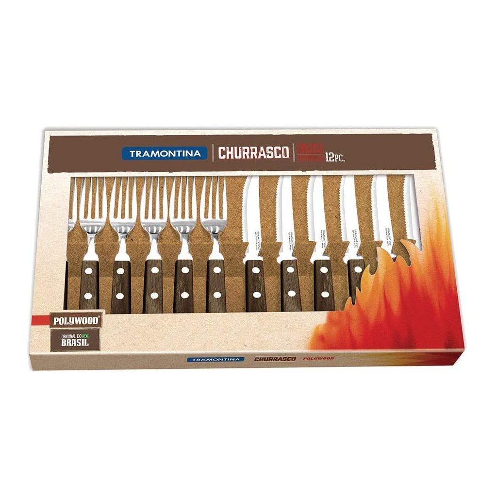 Juego de cubiertos para bistec CHURRASCO, 12 piezas, mangos de madera, Tramontina