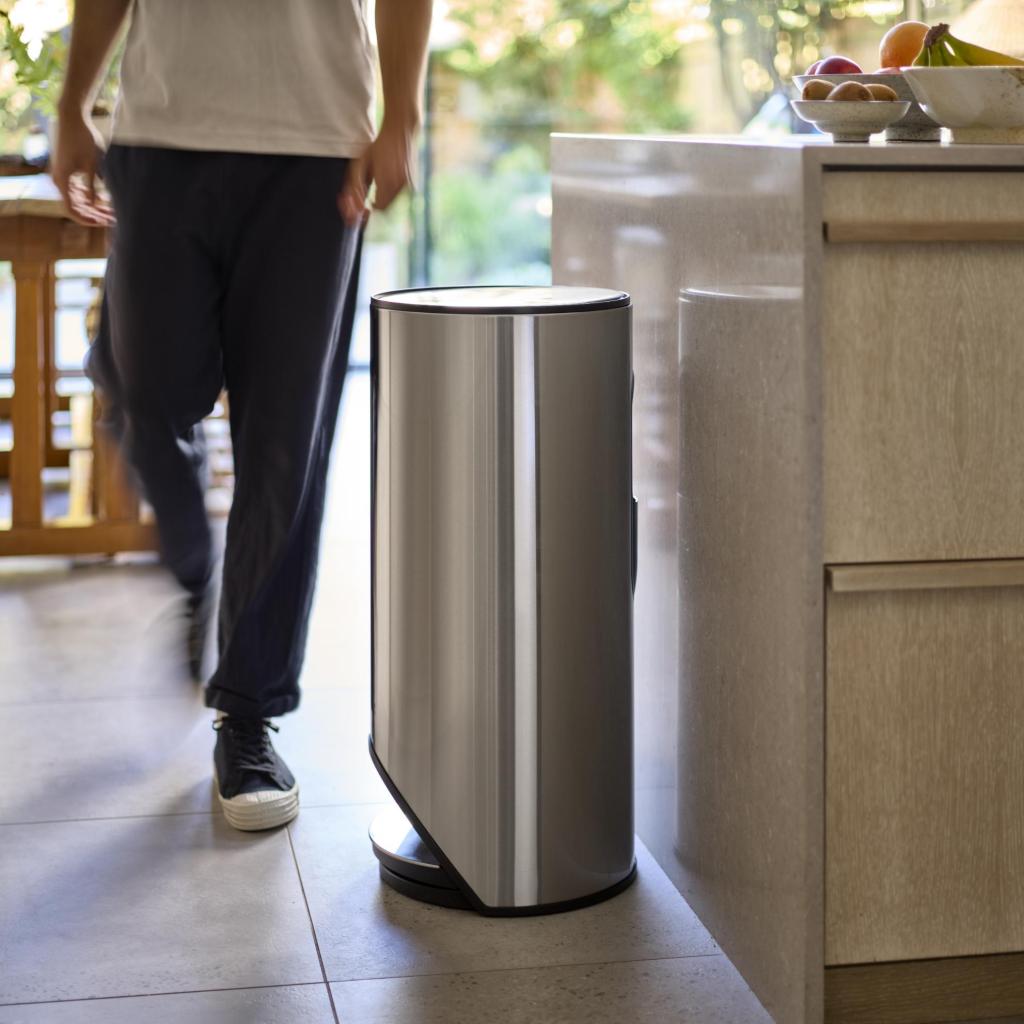 - El volumen de 30 litros proporciona suficiente espacio para la basura doméstica habitual y es especialmente adecuado para cocinas con mucho uso.