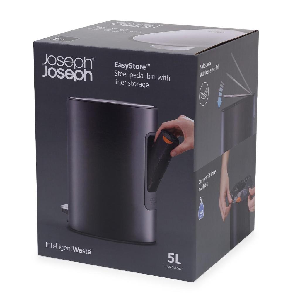 Cubo de basura con pedal EASYSTORE 70595 5 l, negro, acero, Joseph Joseph