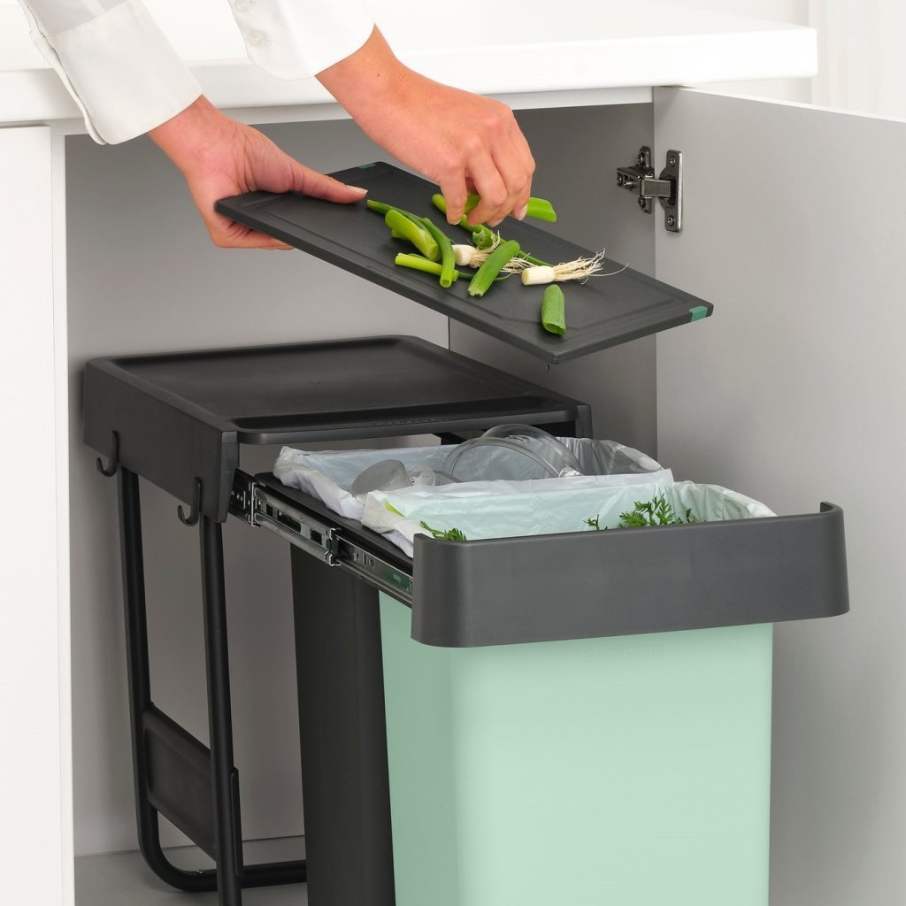 Cubo de basura integrado SORT & GO 2x 15 l, gris oscuro / verde jade, plástico, Brabantia