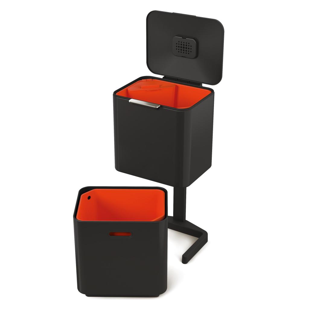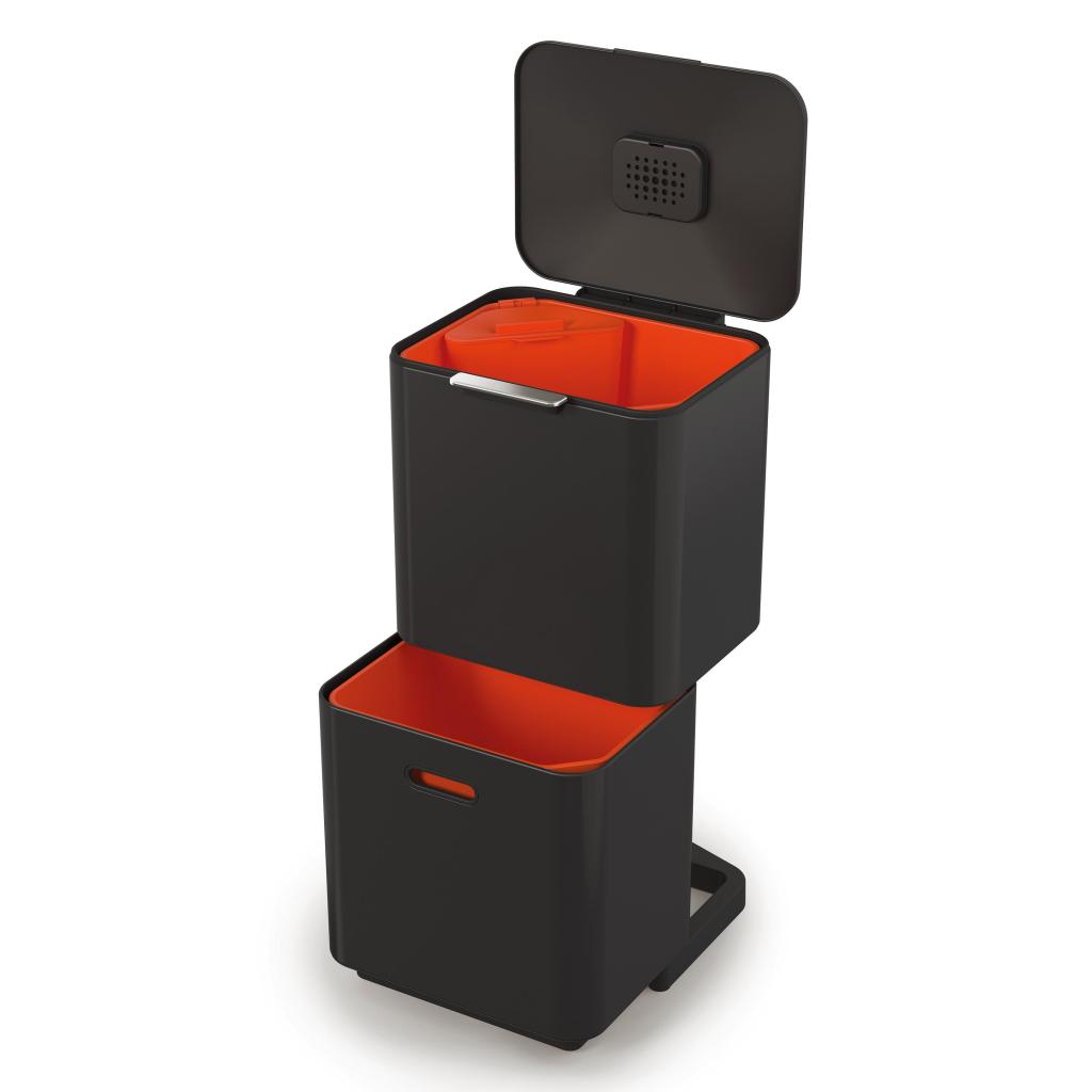 Cubo de basura para reciclaje TOTEM MAX 60 l, negro, acero / plástico, Joseph Joseph