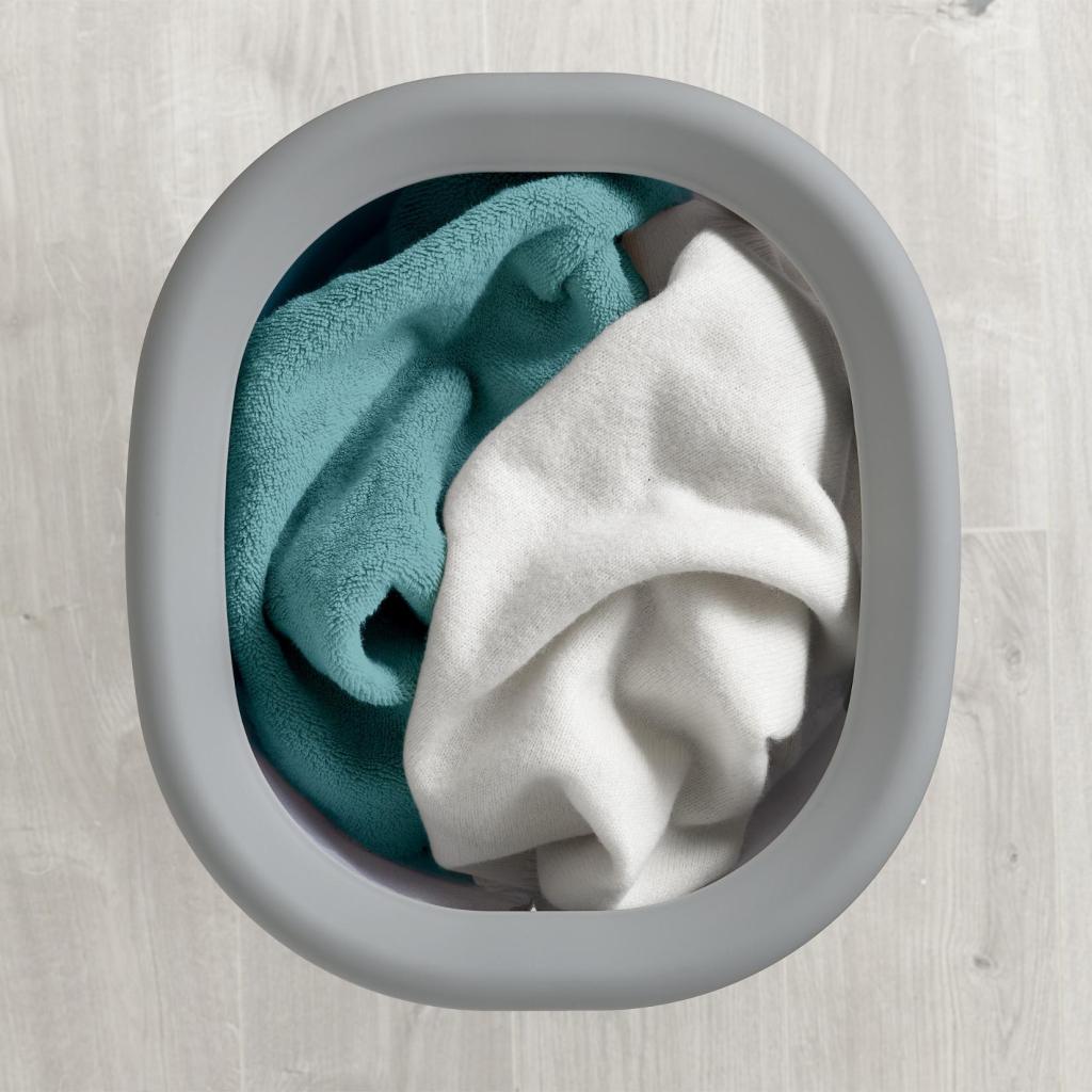 - El cesto incluye una bolsa textil fácilmente extraíble que permite transportar la ropa cómodamente directamente a la lavadora sin necesidad de mover todo el cesto.