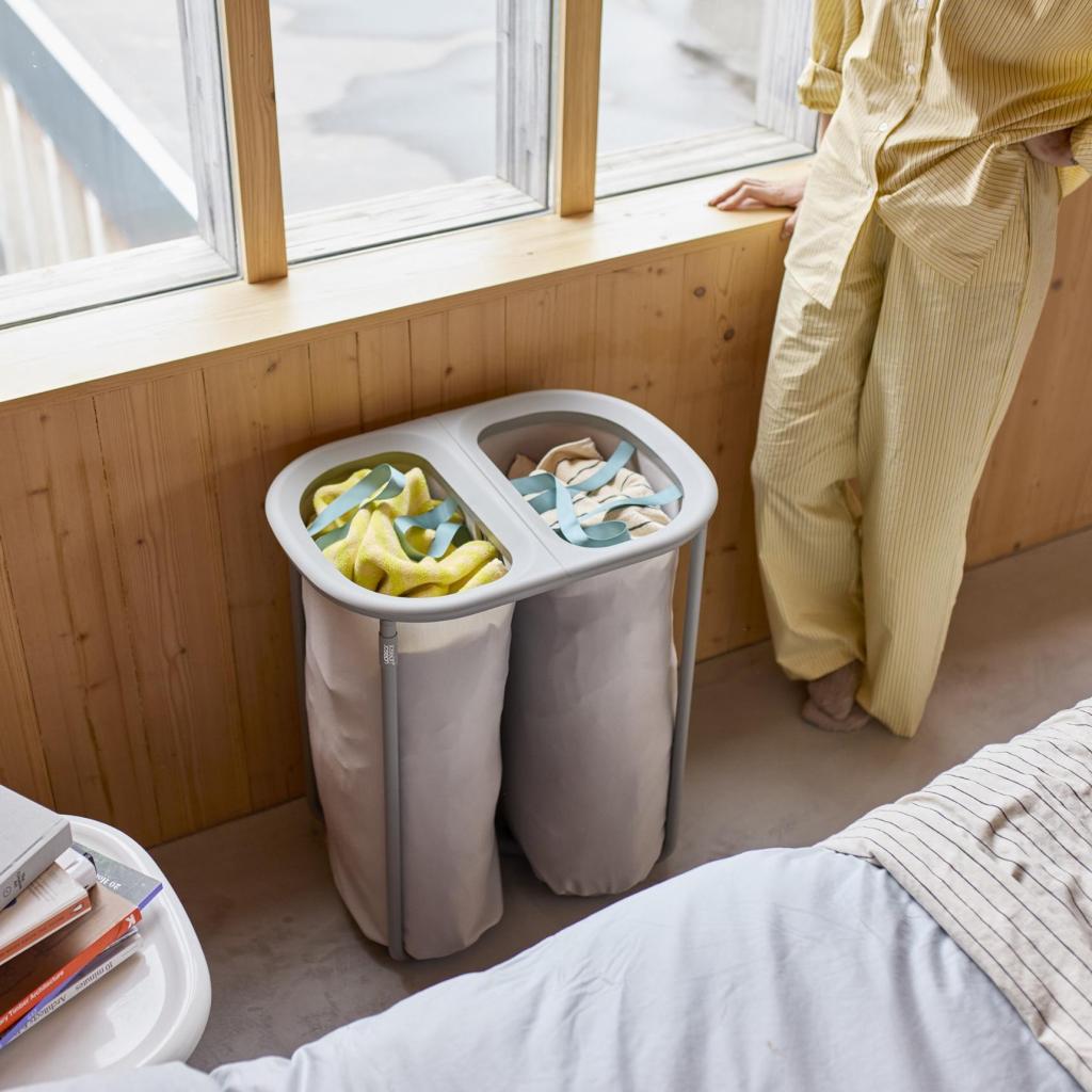 - Cubo para la colada Joseph Joseph DUO con un volumen total de 80 litros, diseñado para una clasificación cómoda y clara de la ropa ya durante su almacenamiento.
