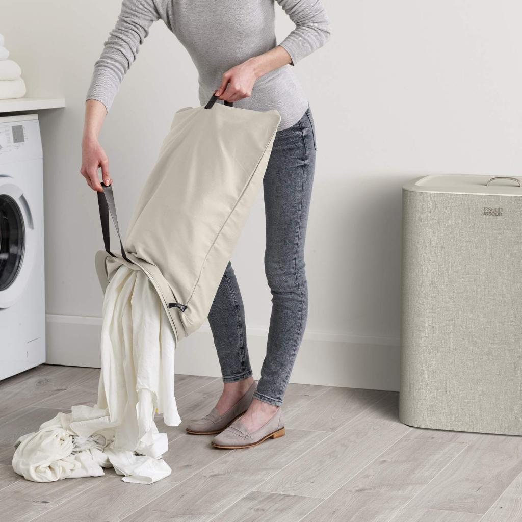 - Cubo para la colada Joseph Joseph TOTA es una solución práctica y elegante para clasificar la ropa sucia en el dormitorio, el baño o el lavadero.