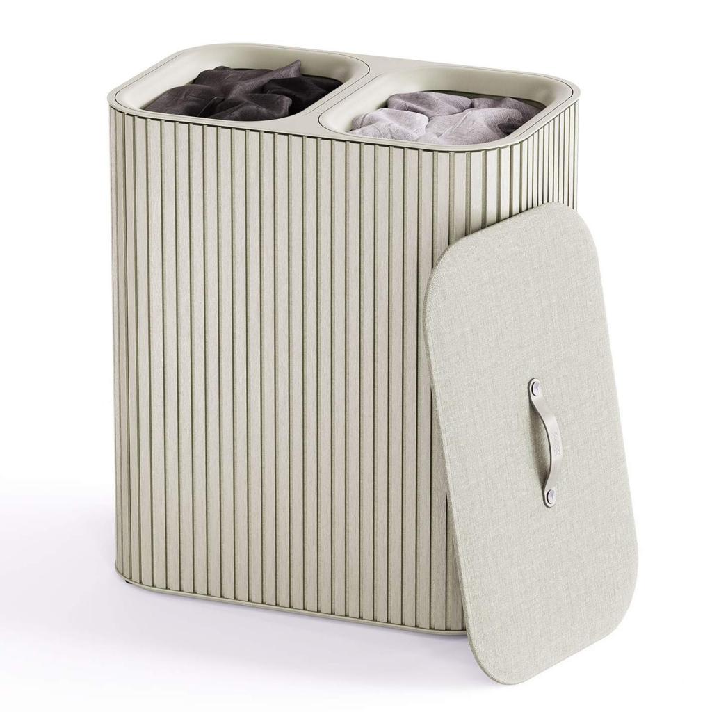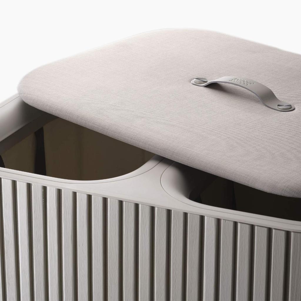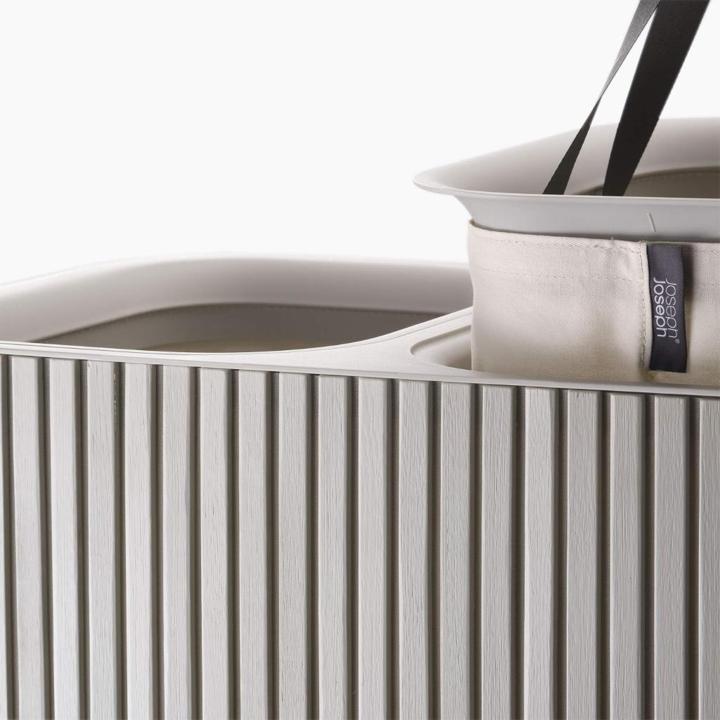 - Cubo para la colada Joseph Joseph TOTA LUXE en color crudo es una solución elegante y práctica para clasificar la ropa en un hogar moderno.