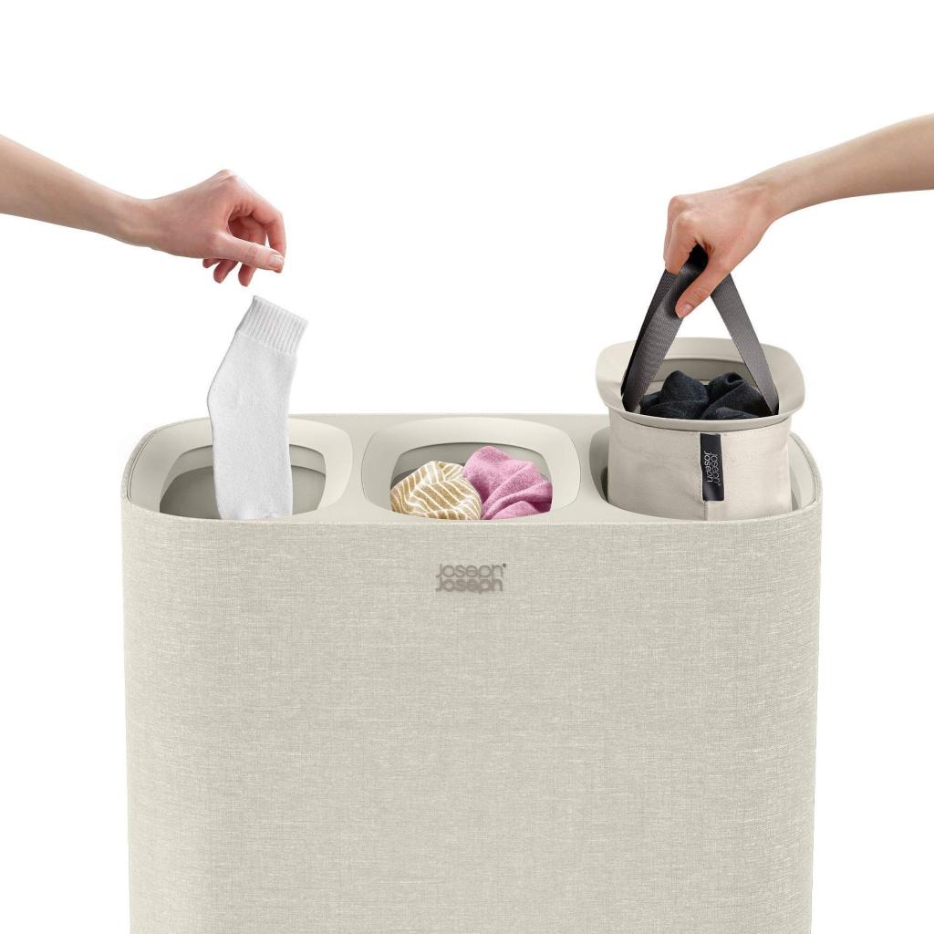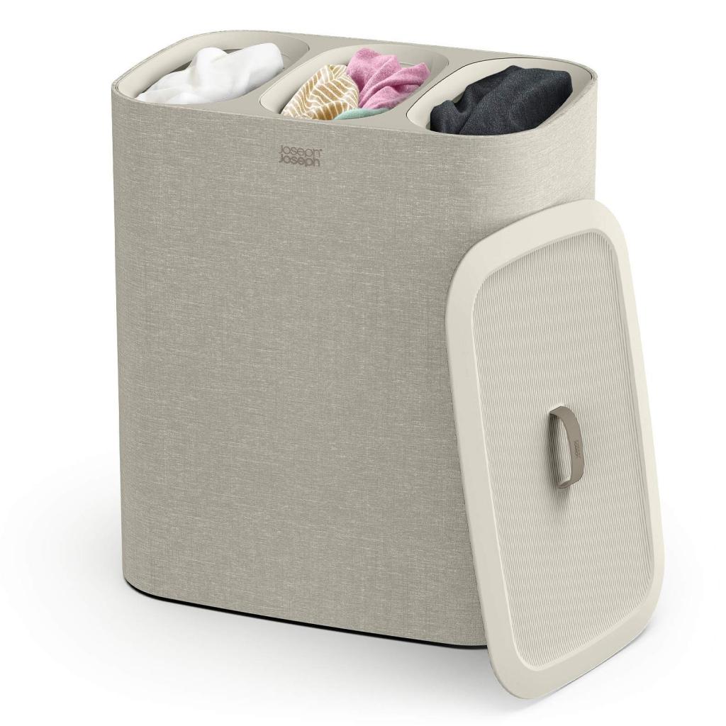 - Cubo para la colada Joseph Joseph TOTA TRIO en color crudo ofrece una solución práctica y clara para clasificar la ropa en el dormitorio, el baño o el lavadero.