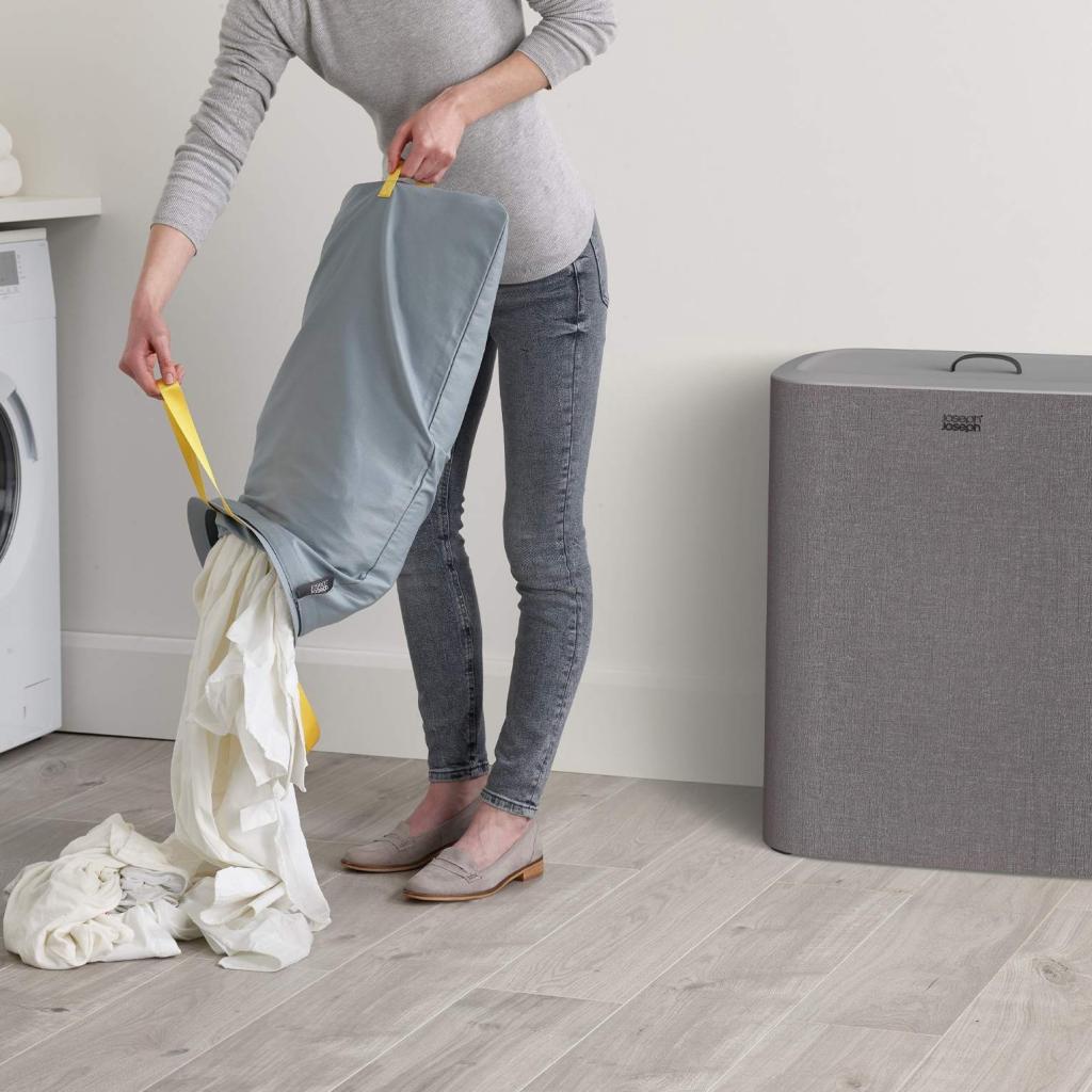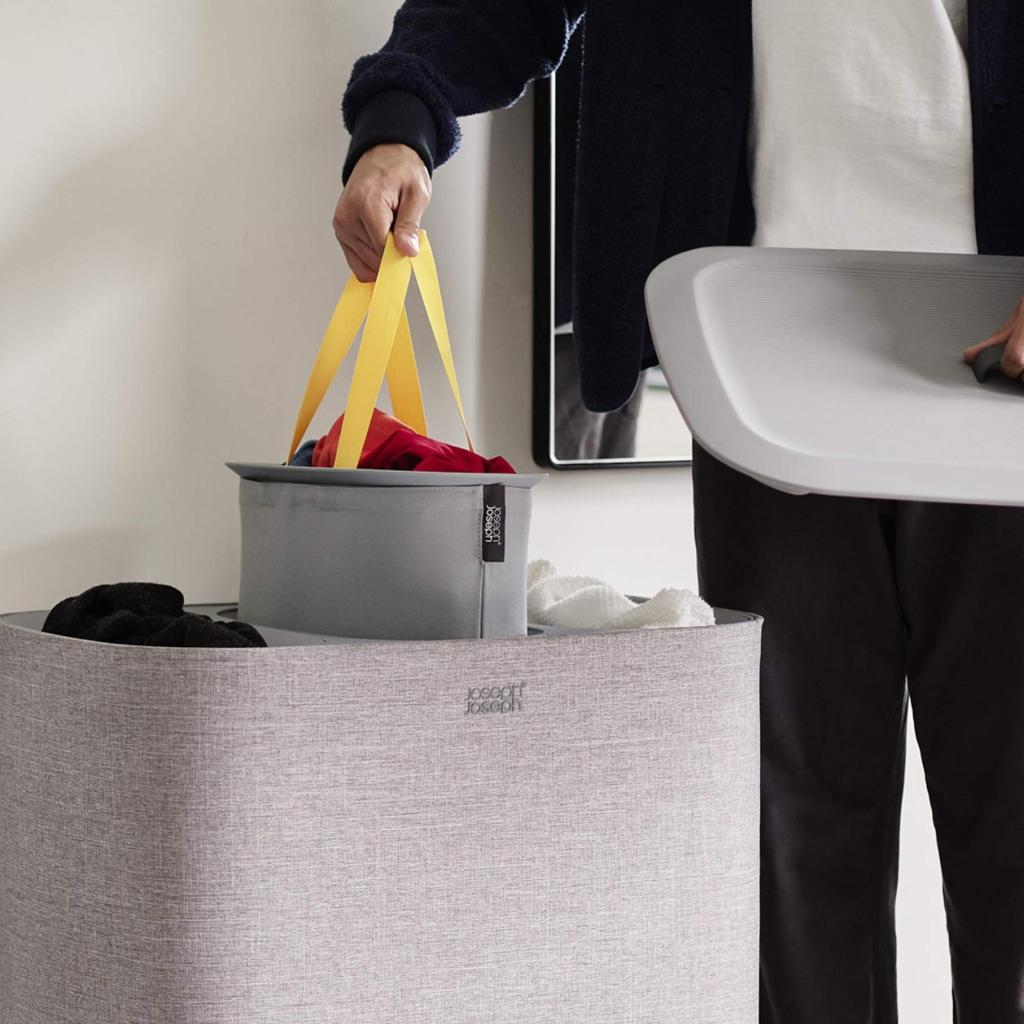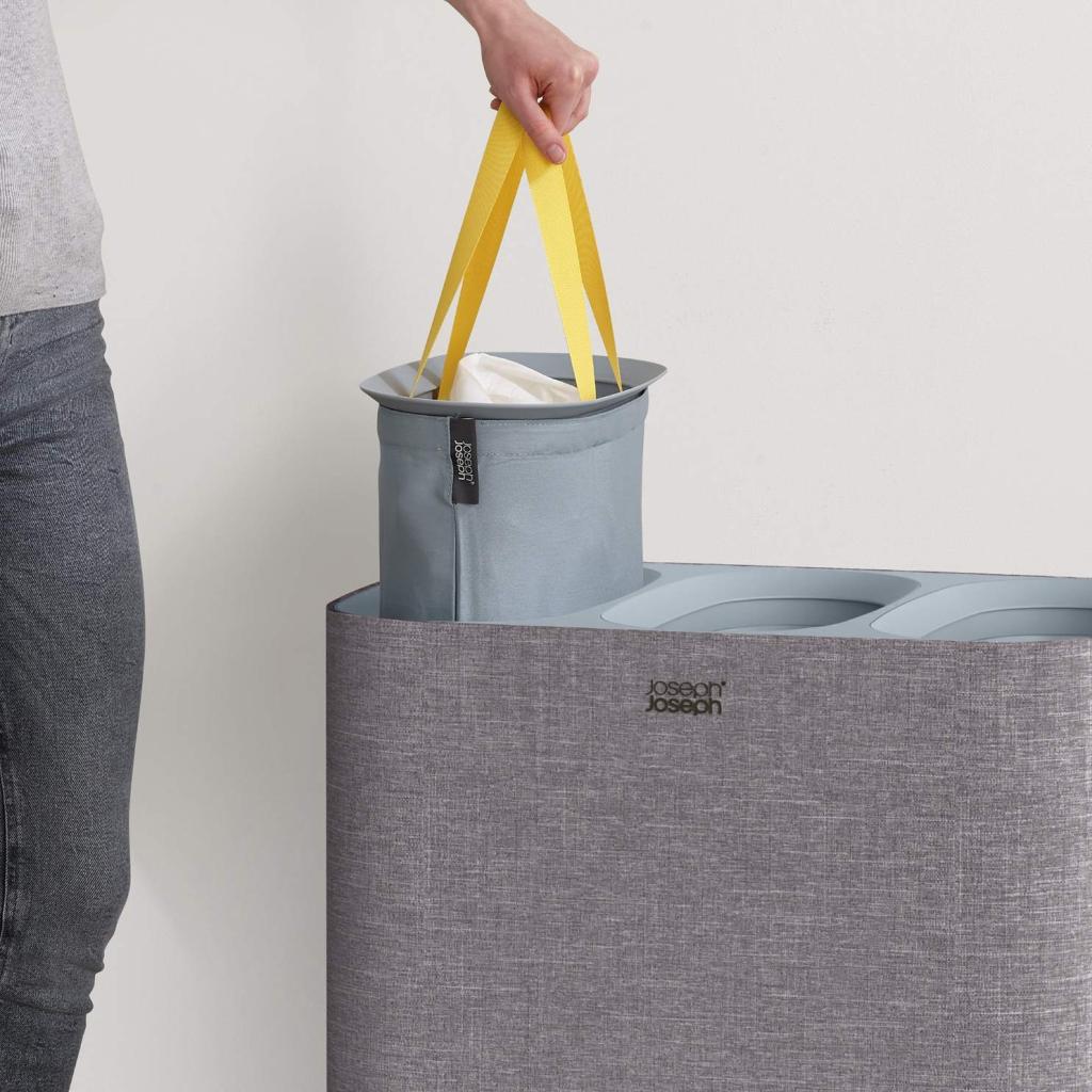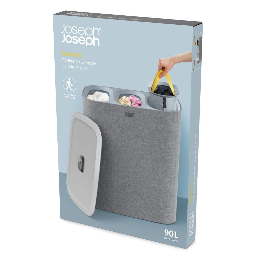 - Cubo para la colada Joseph Joseph TOTA TRIO en gris ofrece una solución práctica y clara para clasificar la ropa en el dormitorio, el baño o el lavadero.