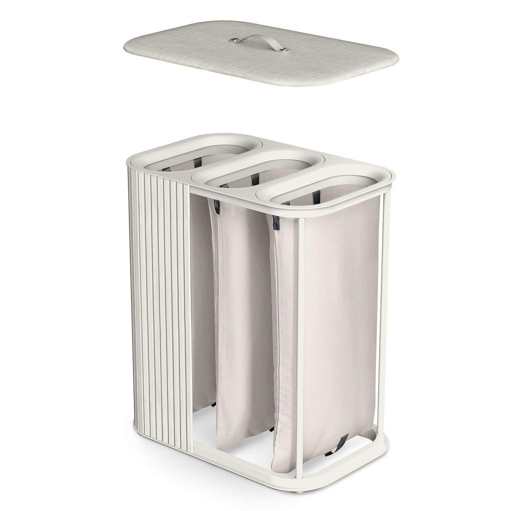 - Cubo para la colada Joseph Joseph TOTA TRIO LUXE en color crudo es una solución elegante y práctica para clasificar la ropa en un hogar moderno.