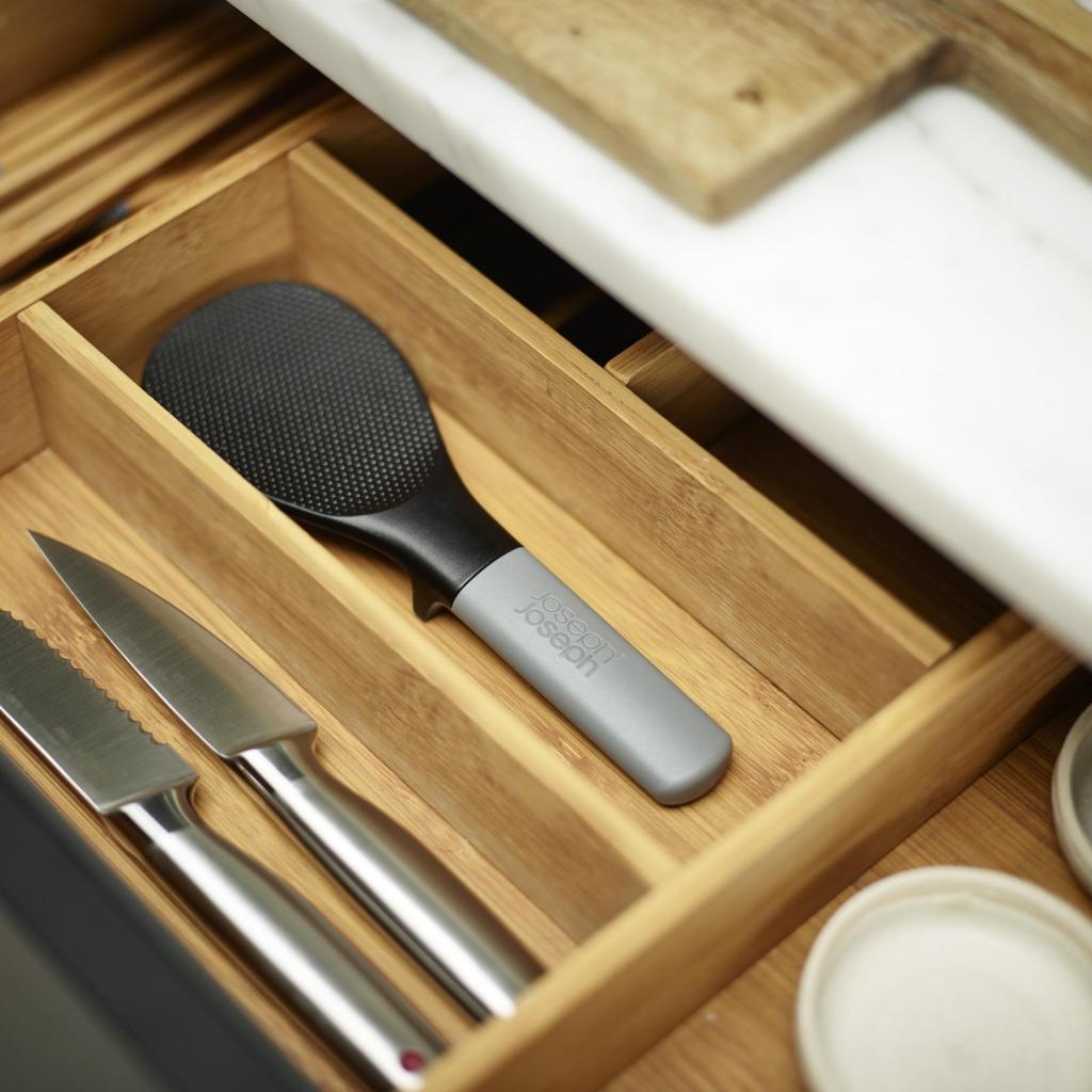 - Los Utensilios de cocina Joseph Joseph están diseñados para ayudar a reducir el desorden en la encimera durante la cocción.