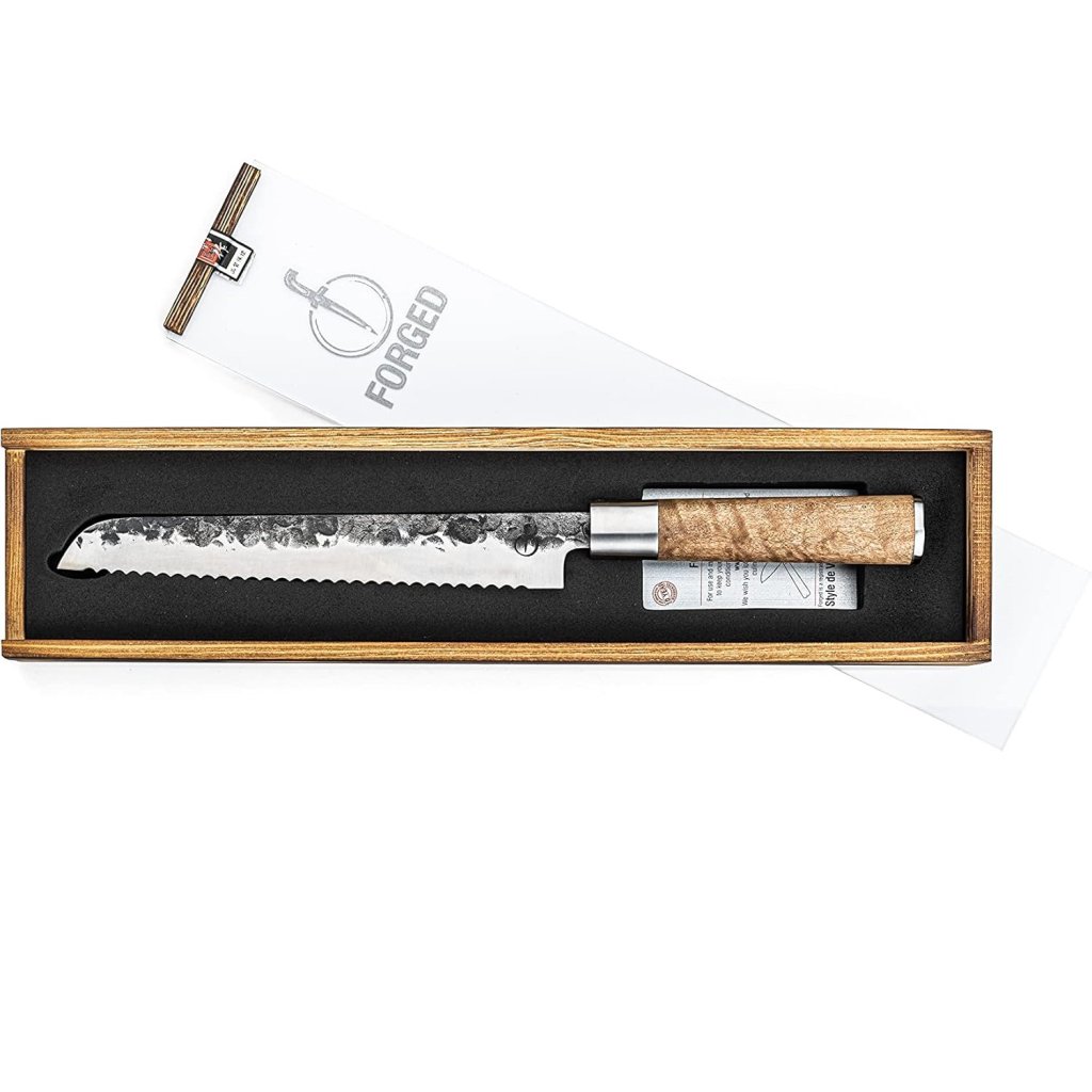 - cocina cuchillo de pan Forged VG10 es la opción ideal para cortar pasteles frescos, baguettes crujientes y panes esponjosos sin apretar ni romper la miga.