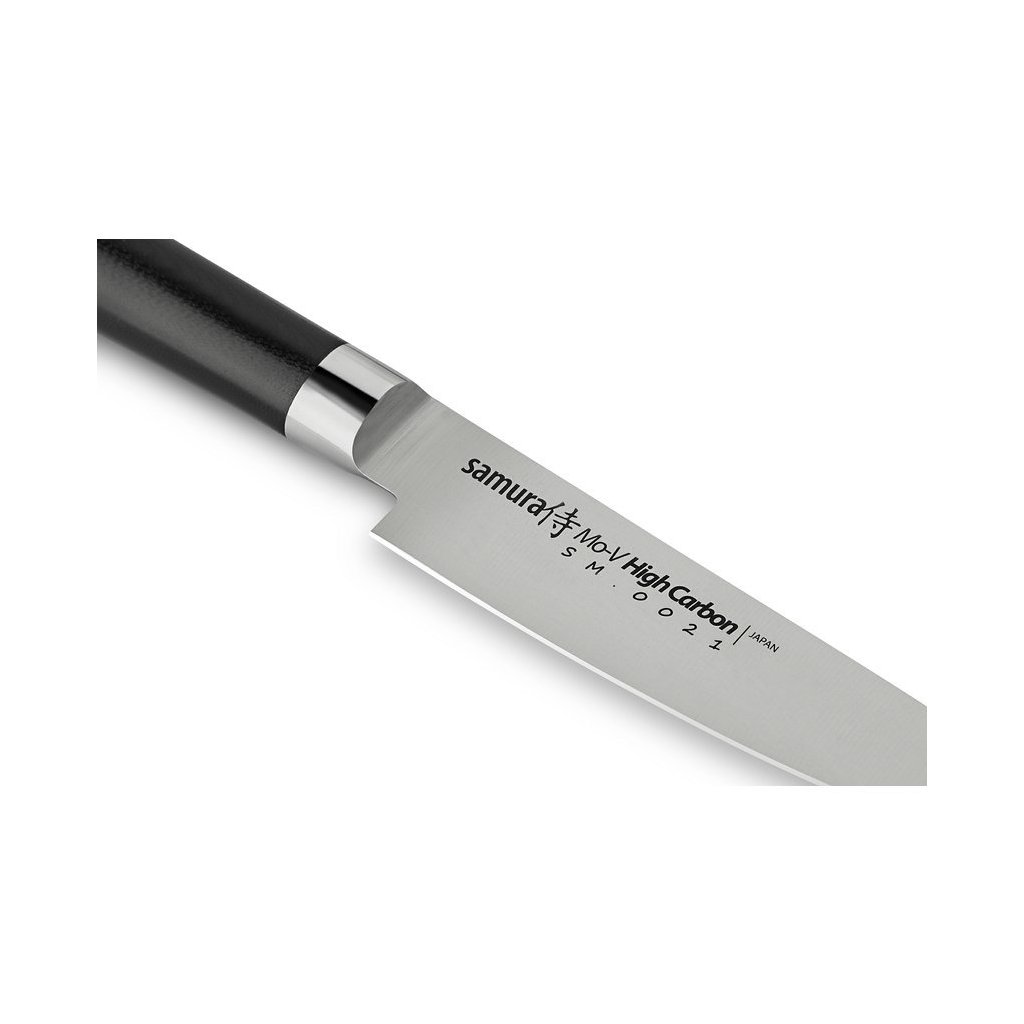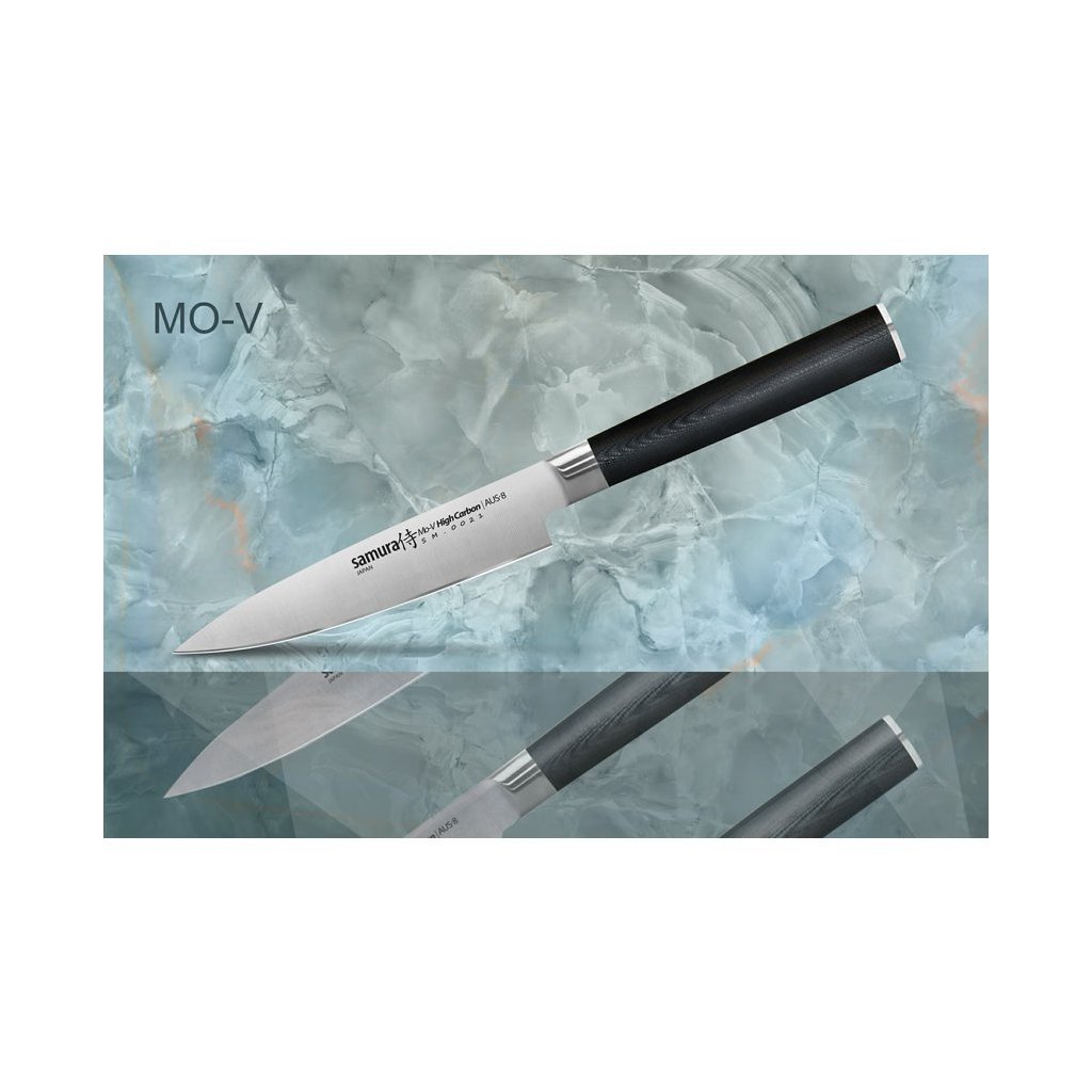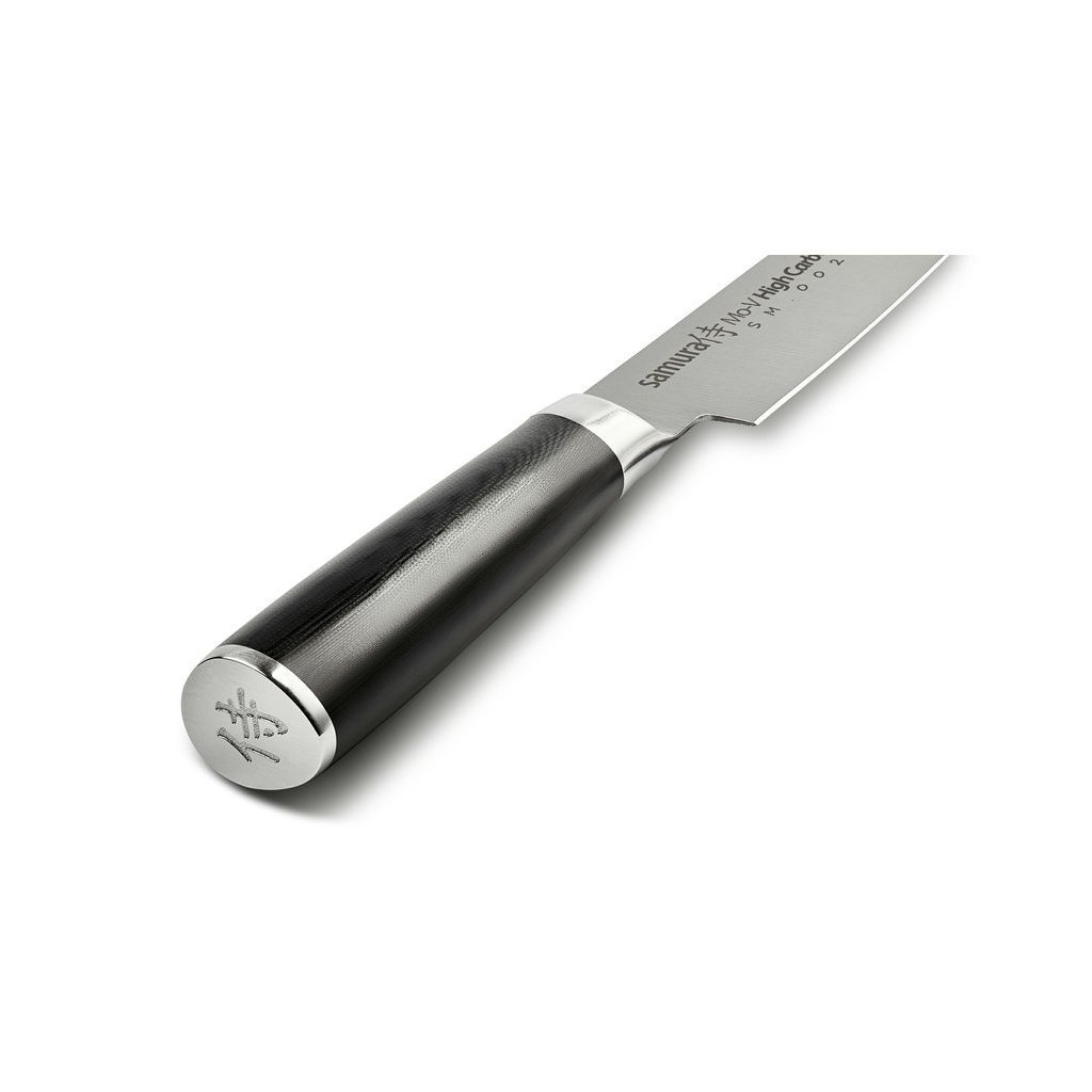Los cuchillos Samura están fabricados con el mejor acero japonés y sueco, endurecido a 58 - 61 HRC. Las cuchillas tienen una forma japonesa y una suave conicidad desde la punta, lo que les confiere un fantástico rendimiento de corte. Los cuchillos Samura se afilan con un ángulo de 17 grados. Es más que los cuchillos japoneses, pero menos que los europeos. Para las asas se utilizan los mejores materiales modernos: Micarta, G10, madera estabilizada, plástico con acabado fino, Kraton y compuestos.