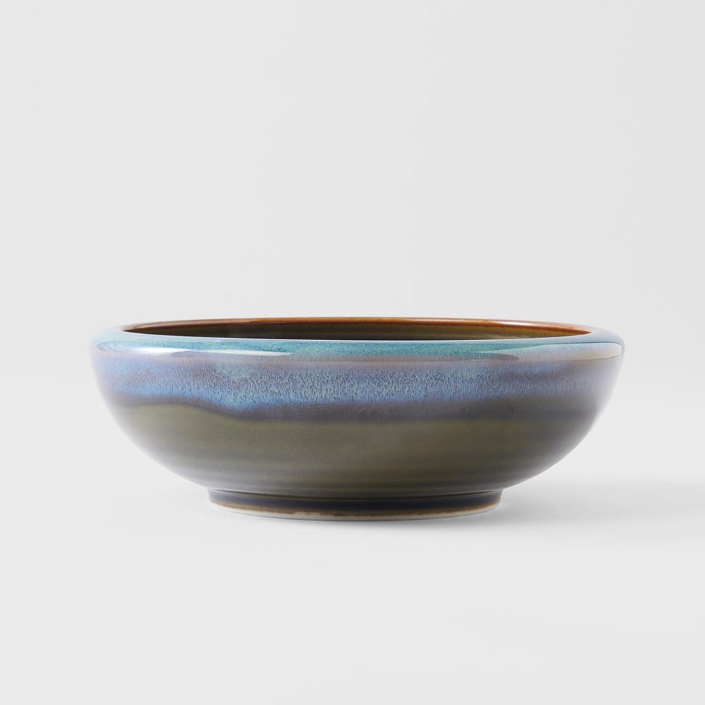 Los tonos azules y verdes de este cuenco parecen como si la propia naturaleza se hubiera metido en el esmalte: el océano y el bosque en un mismo plano. Sienten tanta paz que quieres fingir que eres el tipo de persona que medita cada mañana... aunque la realidad se parezca más a un sprint de tres minutos con una taza de café.