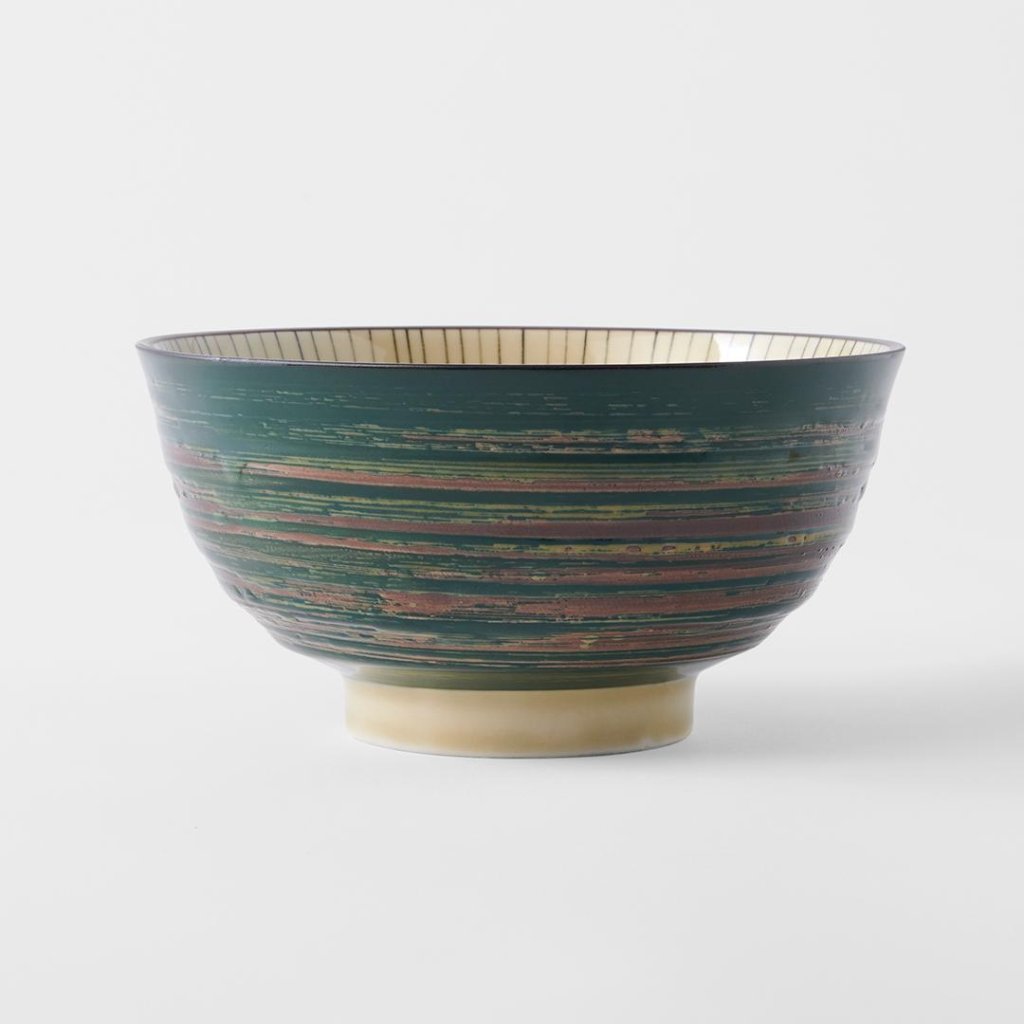 - Cuenco DK GREEN con un diámetro de 17 cm y un volumen de 600 ml combina tonos verdes naturales con el estilo tradicional japonés y es ideal para ramen, donburi y para servir en casa habitualmente.