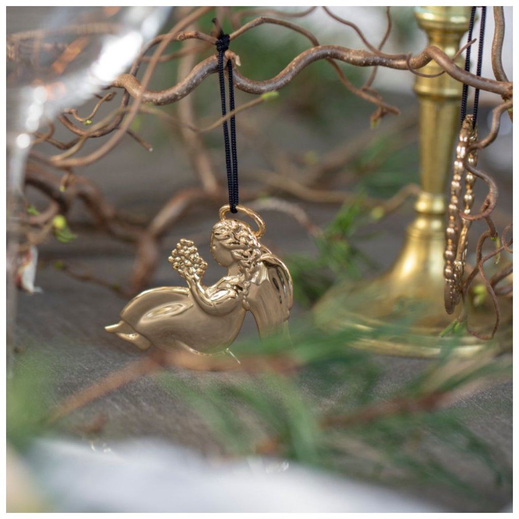 Adorno de Navidad ANGEL WITH FLOWERS 7,5 cm, chapado en oro, Rosendahl