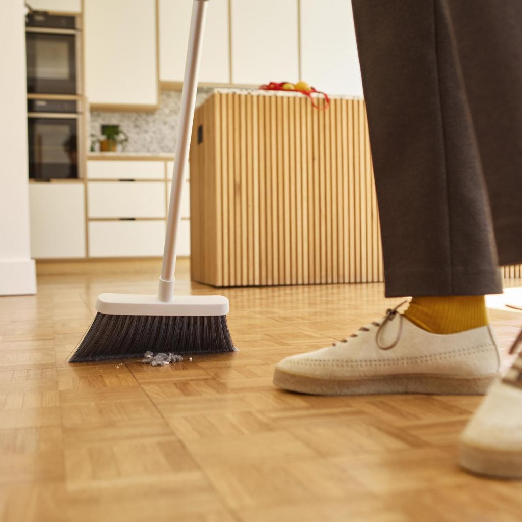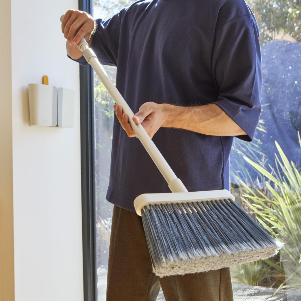 - El mango antideslizante asegura un agarre firme y cómodo al barrer y ayuda a mejorar el control del movimiento de la escoba.