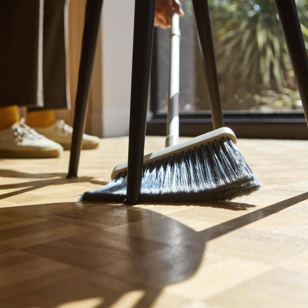- La densa disposición de las cerdas garantiza un barrido eficaz en diversos tipos de superficies, como baldosas, vinilo, laminados o pisos de madera.