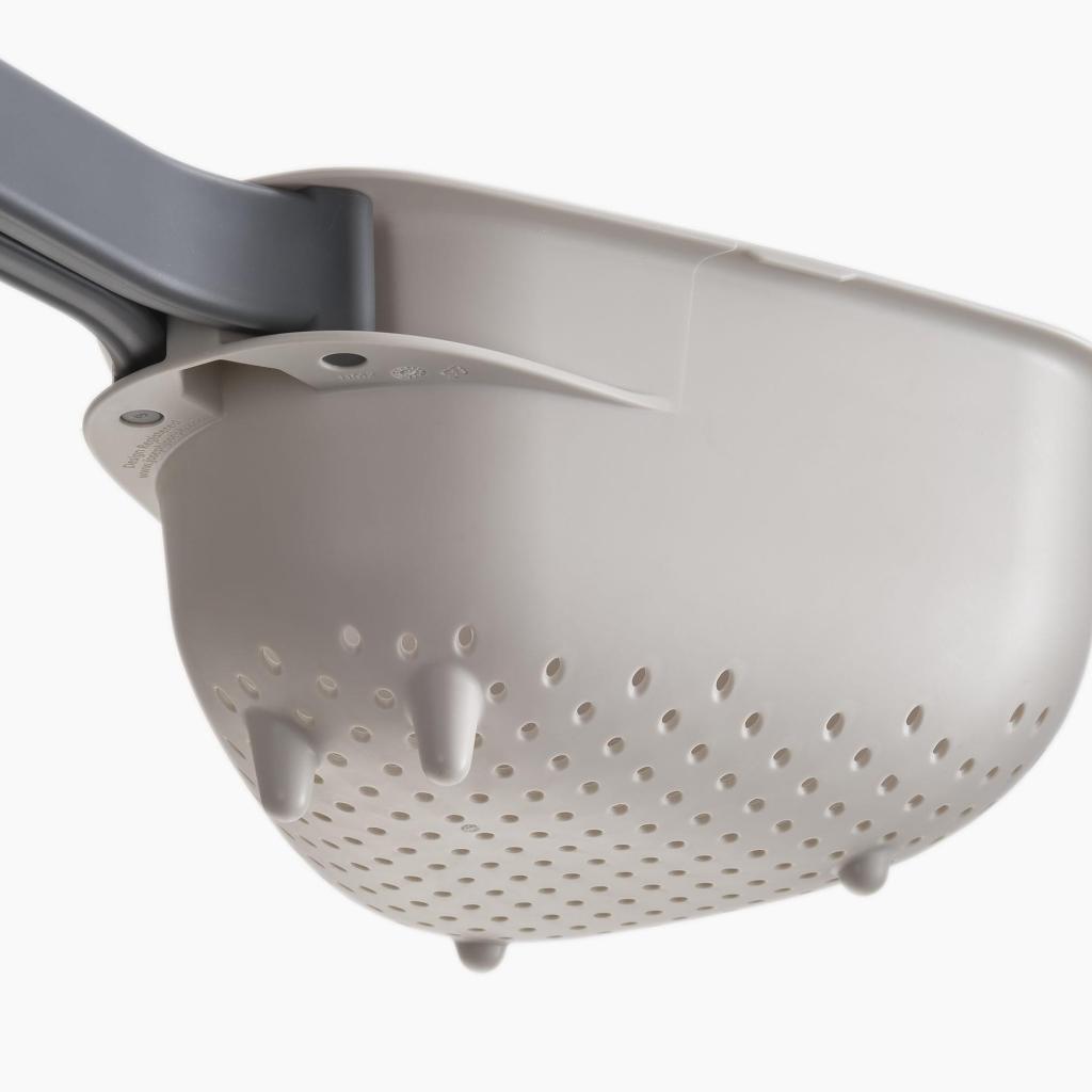 - El gran escurridor Joseph Joseph DROPLET con un práctico mango plegable es un ayudante ideal para enjuagar cómodamente las verduras, colar la pasta y drenar rápidamente el agua directamente sobre el fregadero.