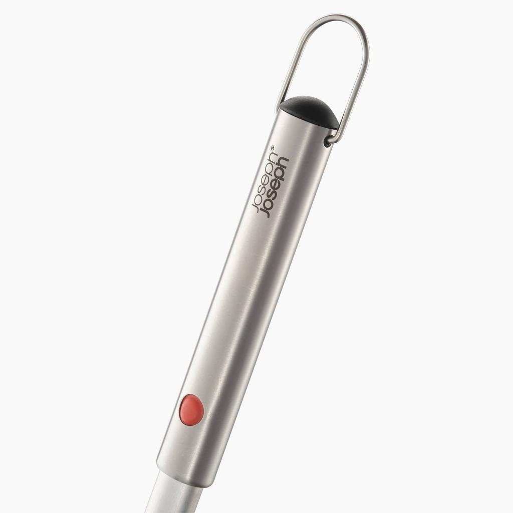 - El mango extensible permite alargarlo durante el uso y luego retraerlo para ahorrar espacio al guardarlo en la cocina.