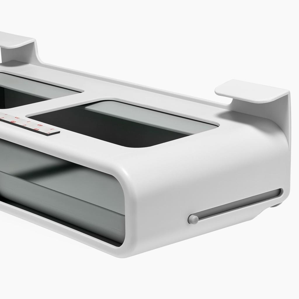 - El diseño diseñado para instalarse debajo del estante ayuda a maximizar el uso del espacio en el armario de la cocina y al mismo tiempo mantiene la superficie de trabajo ordenada.