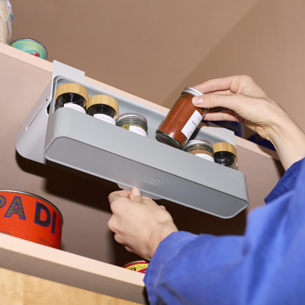 - CUPBOARDSTORE de Joseph Joseph es una solución inteligente para cualquiera que desee tener sus especias organizadas de forma clara y, al mismo tiempo, aprovechar al máximo el espacio en el armario de la cocina.
