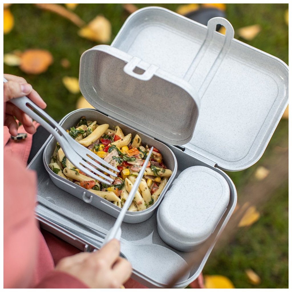 Juego de fiambreras con cubiertos de viaje PASCAL READY, gris orgánico, Koziol