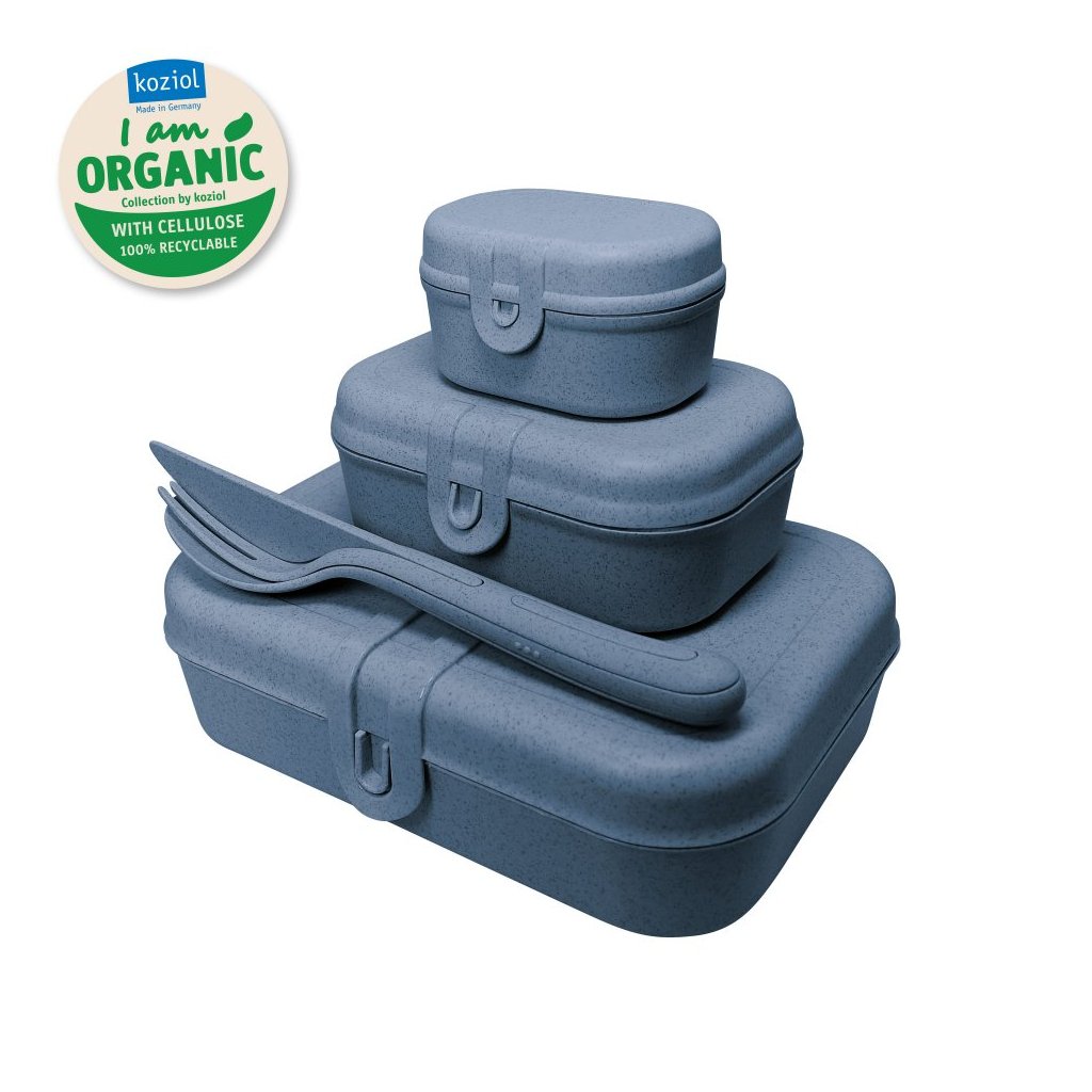 Llevar tu propia comida al trabajo o de viaje te permite reducir la cantidad de envases desechables. El juego pertenece a la gama de productos Bio de Koziol, que están fabricados con plástico y celulosa 100% reciclados y aptos para la alimentación, lo que permite ahorrar más de dos tercios de CO2 en comparación con el uso de materiales nuevos. De este modo, no sólo comes de forma saludable y ahorras algo de dinero, sino que también proteges el medio ambiente.