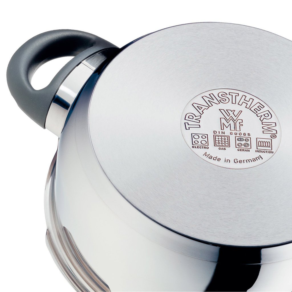 Las ollas a presión WMF también tienen la ventaja de utilizar la base universal TransTherm®, que es apta para todo tipo de calor, incluida la inducción. El fondo absorbe rápidamente el calor y lo transfiere uniformemente a los alimentos que se preparan. El tiempo de cocción en una olla a presión es hasta un 70% más corto que en la cocción convencional, lo que resulta delicado para las vitaminas y los minerales. Al mismo tiempo, le ahorra tiempo y hasta un 50% de electricidad. Además, gracias a los insertos especiales, puede cocinar varios alimentos a la vez en la olla a presión.