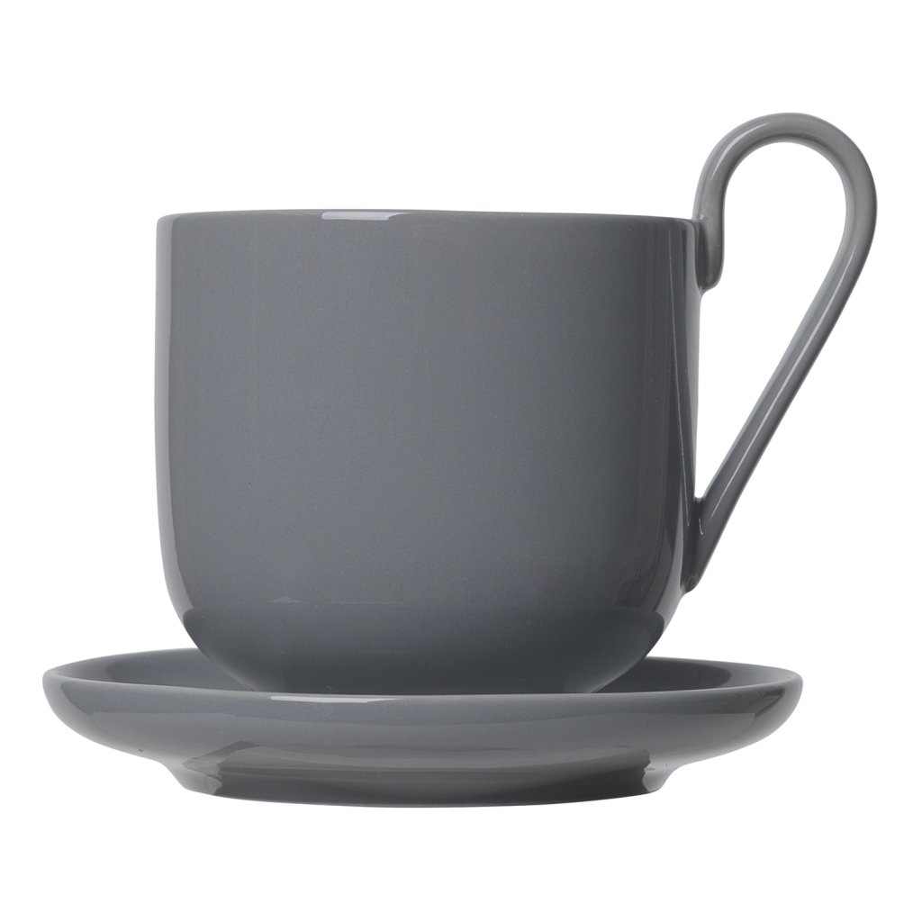 Taza de café con platillo RO, juego de 2 piezas, 290 ml, gris oscuro, Blomus