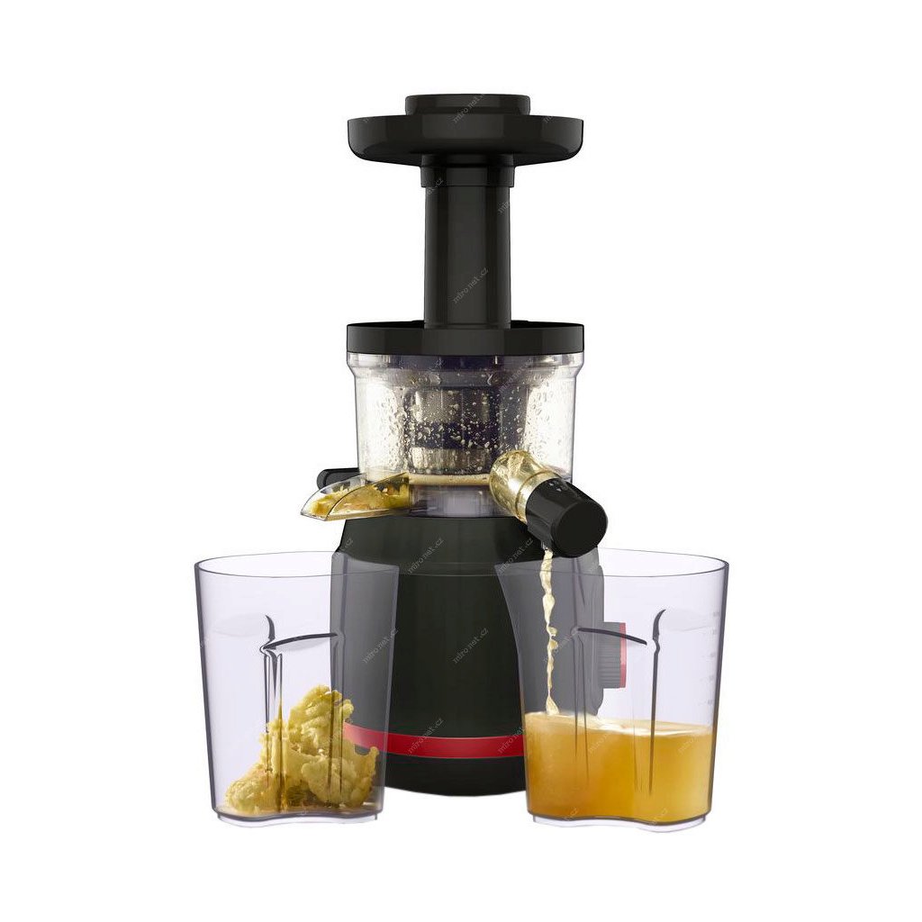 El exprimidor utiliza la tecnología de prensado en frío, que deja la máxima cantidad de zumo y sólo un mínimo de pulpa residual. Se puede ajustar el volumen de pulpa que queda en el zumo. Una gran ventaja es la conservación de una gran cantidad de componentes nutricionales, vitaminas y otras sustancias beneficiosas. También apreciará la función de marcha atrás y la velocidad constante. Las piezas desmontables pueden lavarse en el lavavajillas.