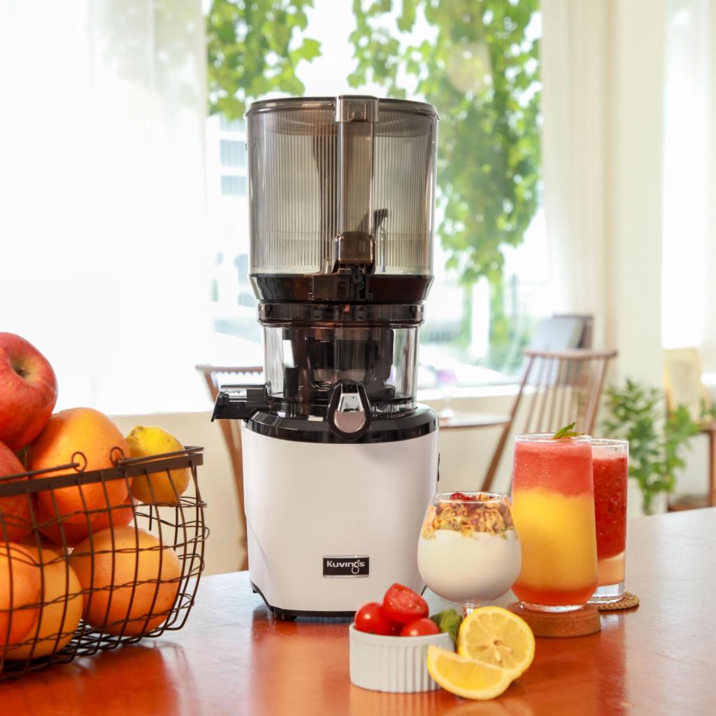 - El exprimidor Kuvings AUTO10S es un moderno dispositivo diseñado para exprimir fácilmente el jugo de frutas y verduras introducidas sin necesidad de cortar previamente los ingredientes.