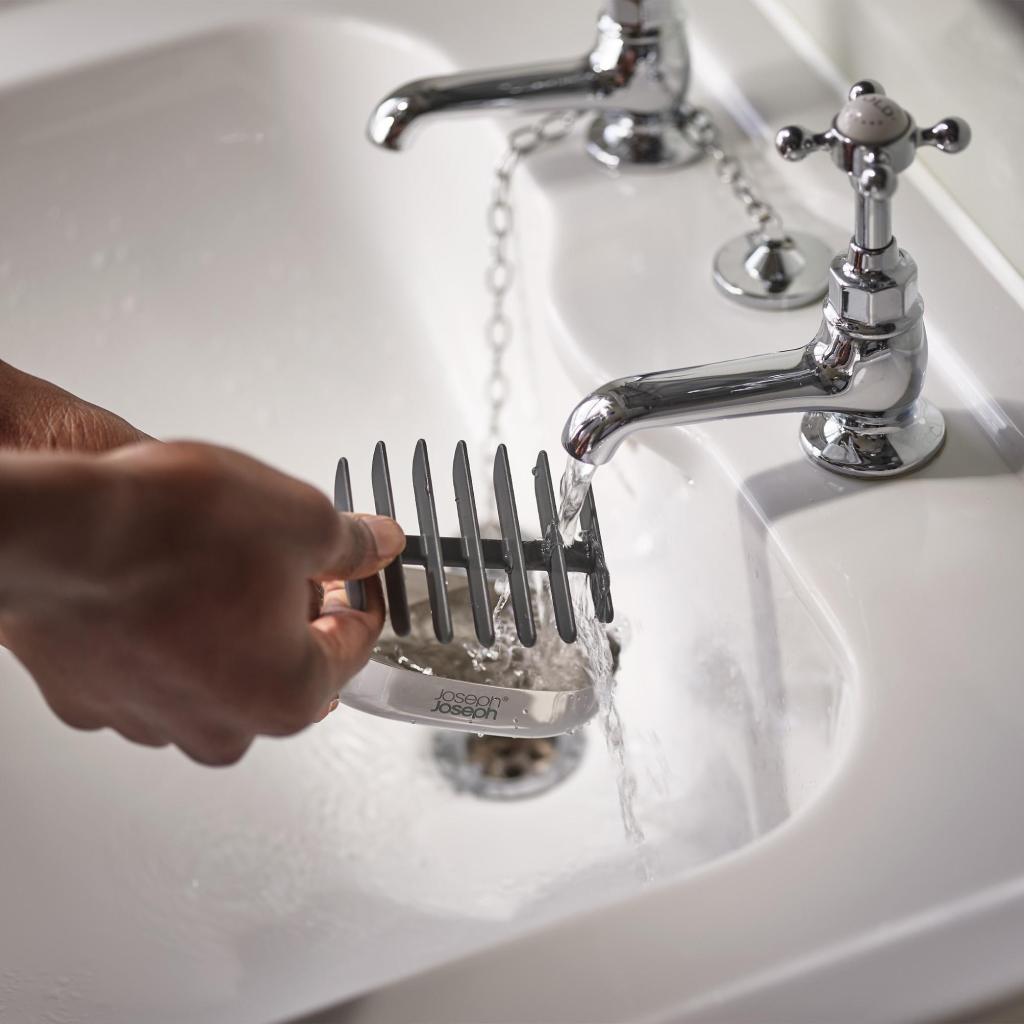 - La rejilla interior extraíble mantiene el jabón sobre el fondo del recipiente, de modo que no toca el agua residual y permanece sólido por más tiempo.