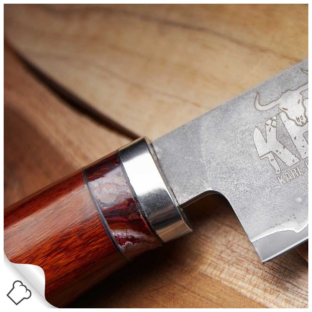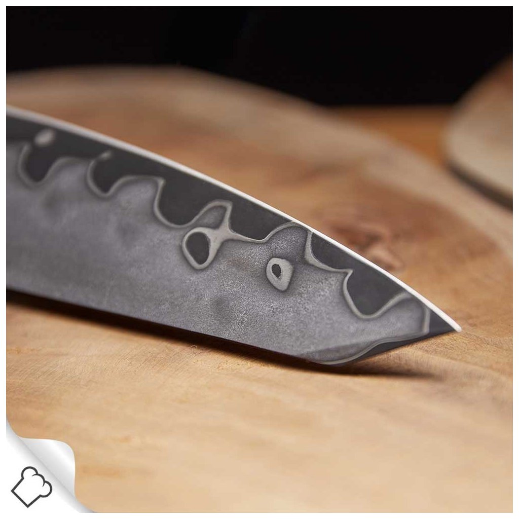 - hoja duradera de 7 capas de acero damasquinado