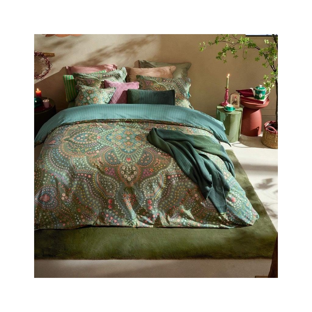 Juego de cama individual ALFOMBRA 140 x 200 cm, verde, percal de algodón, Pip Studio