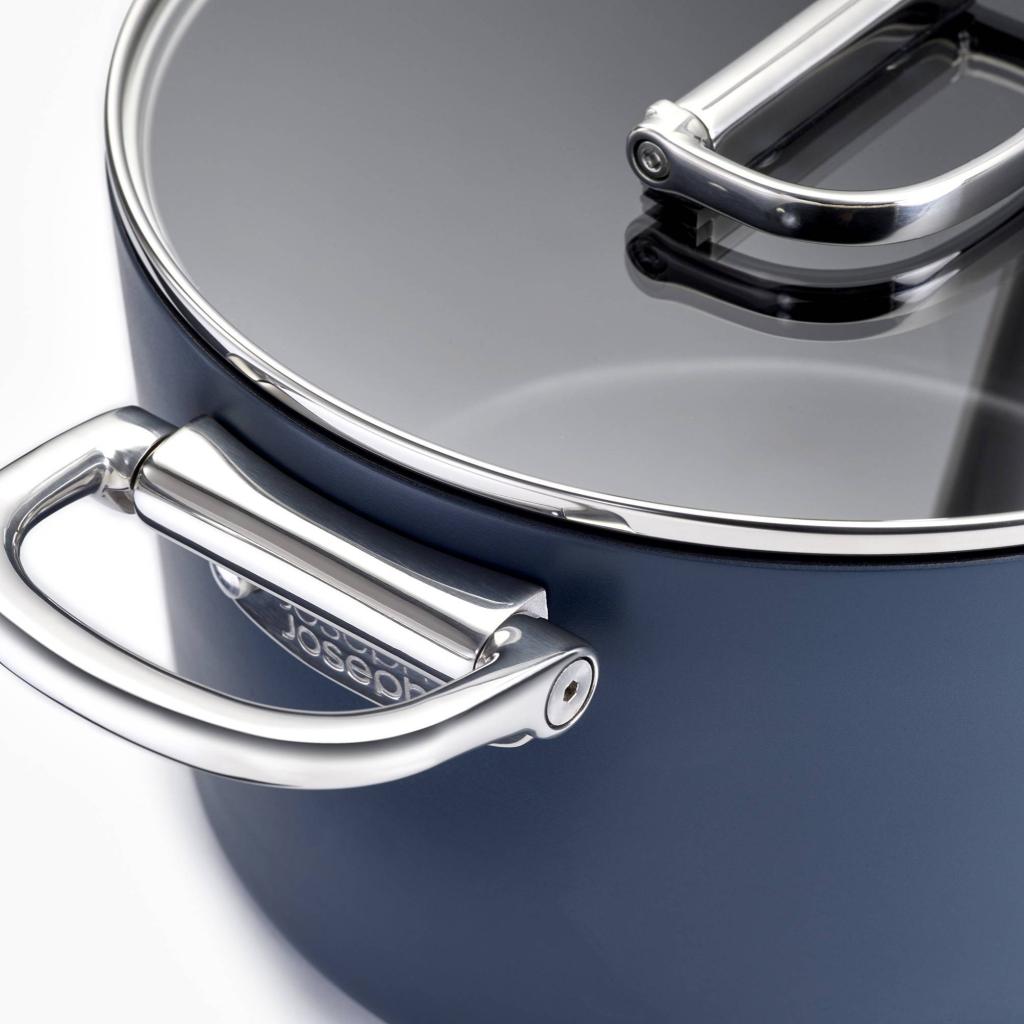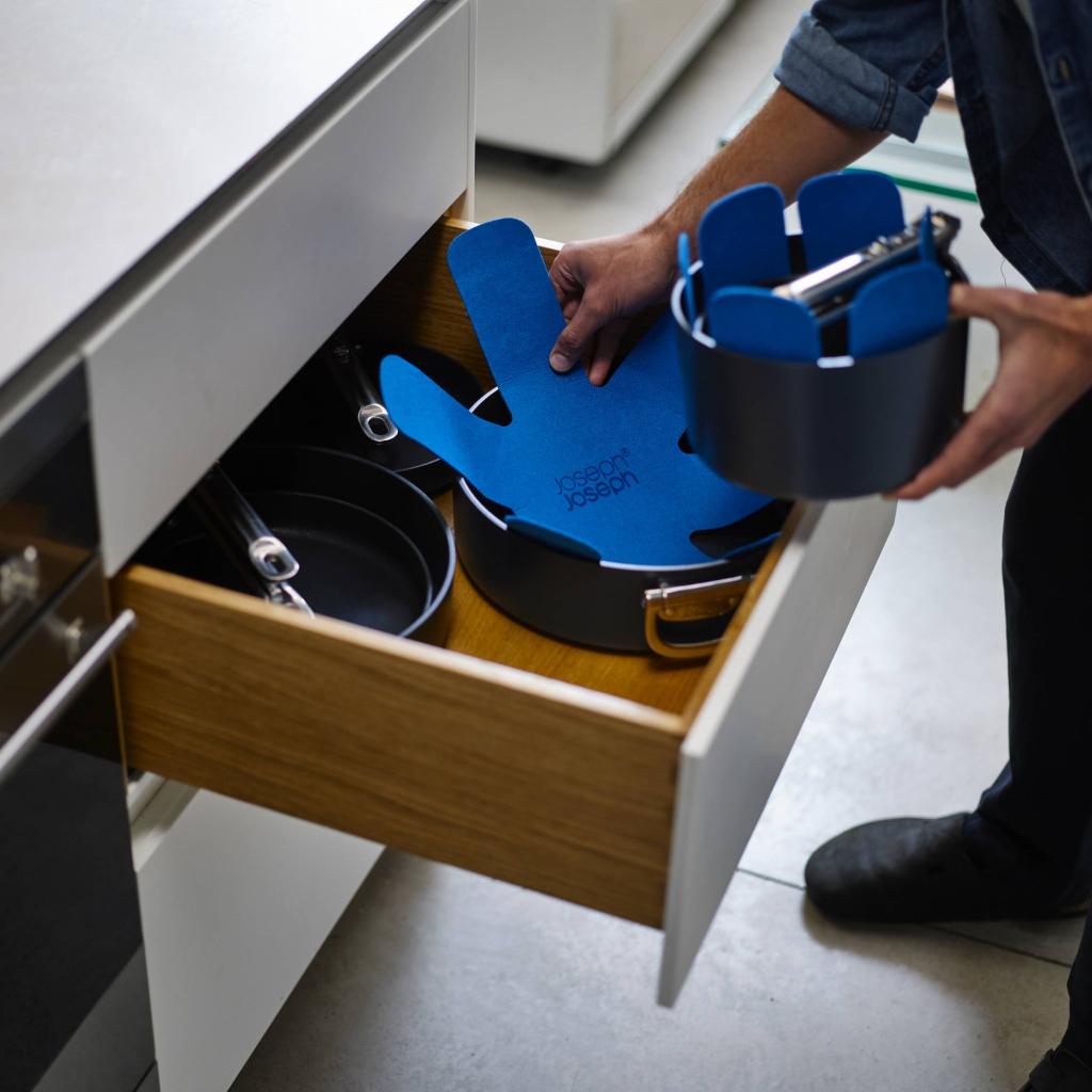Batería de cocina que entiende las realidades de la cocina moderna - Joseph Joseph SPACE. Durante la cocción, se mantiene firme y seguro, listo para manejar todo, desde un desayuno rápido hasta una cena improvisada. Pero cuando llega el momento de guardar, cambia de carácter y se adapta discretamente al espacio, sin reclamar más sitio del estrictamente necesario. ¿Qué más se puede pedir?