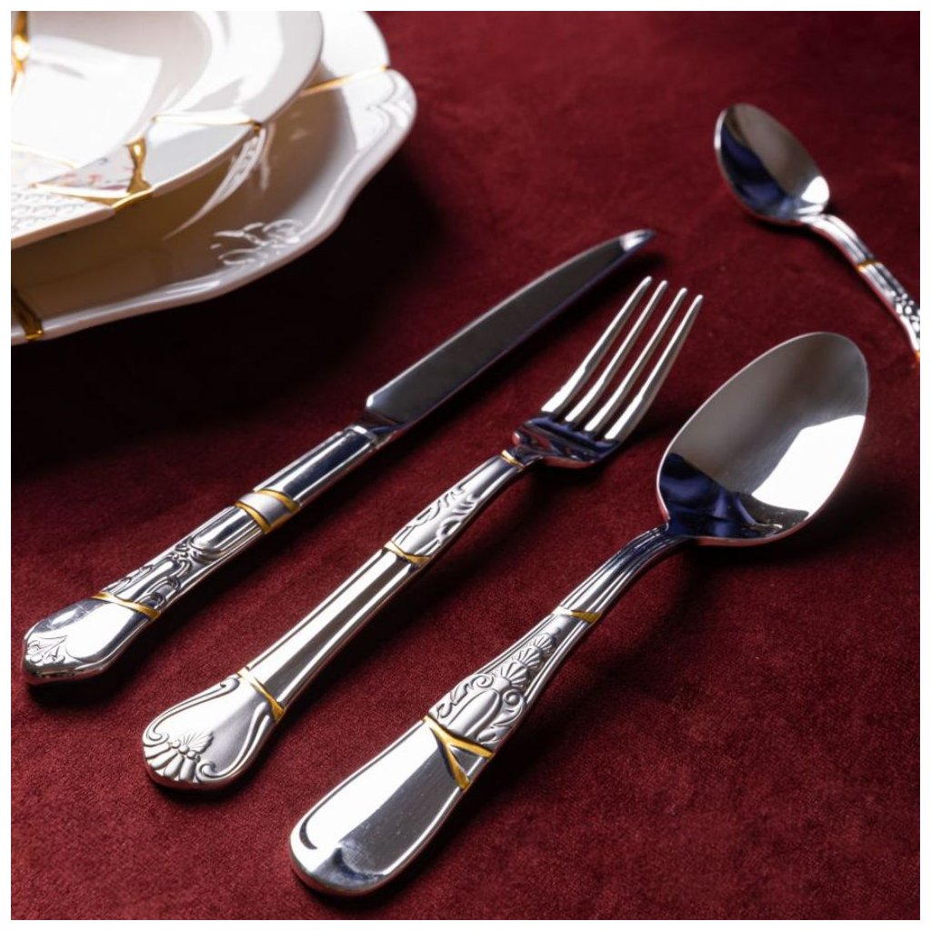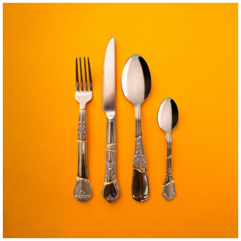 Juego de cubiertos de mesa KINTSUGI, juego de 4, plata, acero inoxidable/oro, Seletti