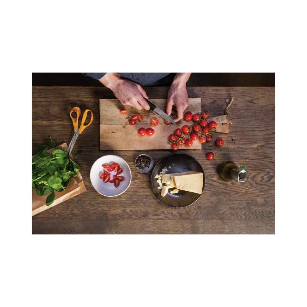 El juego de dos cuchillos de la serie premium Fiskars Hard Edge, que seguramente encontrará un uso en todas las cocinas, también puede servir como un regalo adecuado.