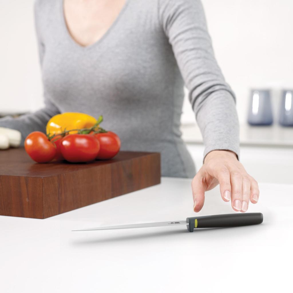 - El cuchillo serrado con una hoja de 11,5 cm es perfecto, por ejemplo, para cortar pan, tomates u otros alimentos con una piel más firme.