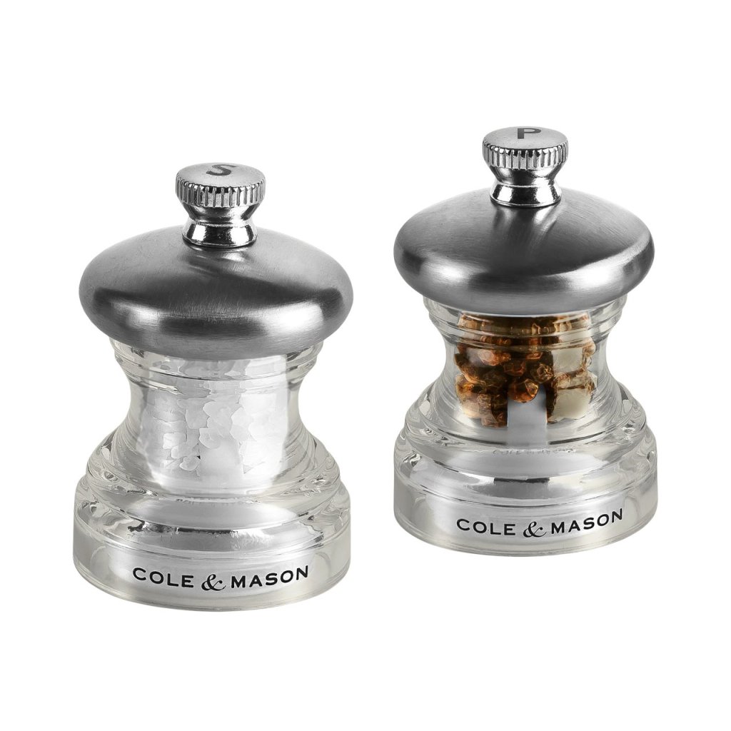 - juego de molinillo de sal y pimienta Cole & Mason BUTTON es una opción ideal para cenas al aire libre y picnics con énfasis en dimensiones compactas y un aspecto moderno.