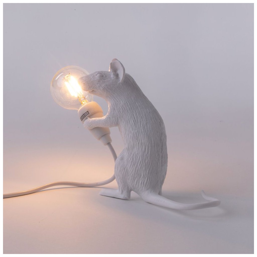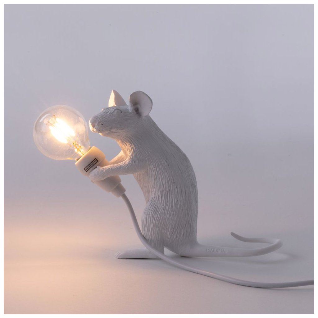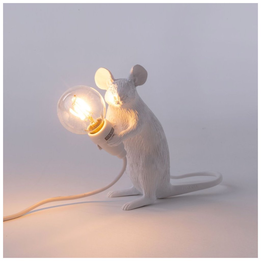Lámpara de mesa MOUSE SITTING 12,5 cm, enchufe USB, blanco, Seletti