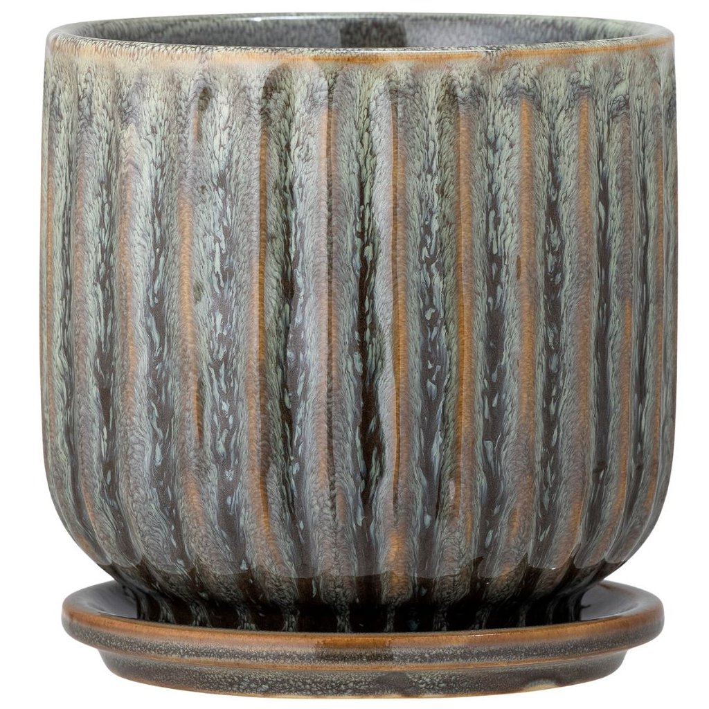 Macetero con platillo DRAGO 15 x 16 cm, verde, gres, Bloomingville